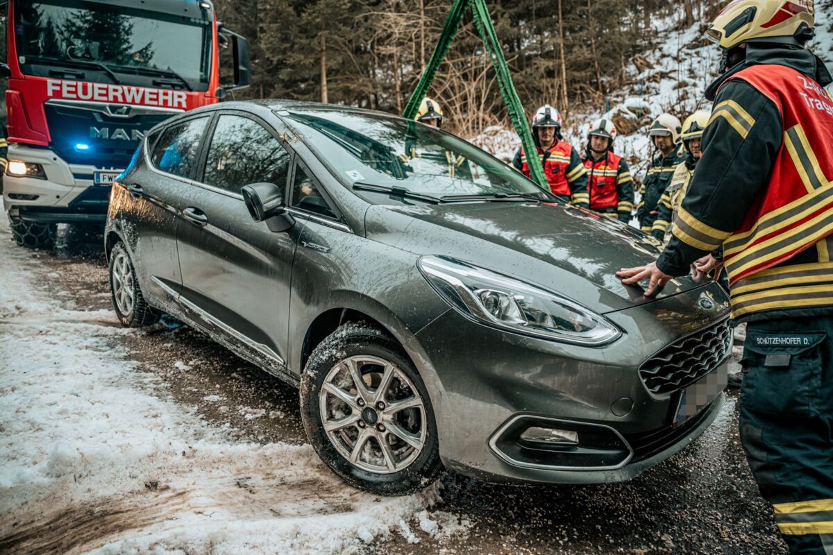 Die Fahrerin konnte das Fahrzeug selbstständig verlassen, blieb unverletzt und benötigte keine Rettung. Kurz nach 8.45 Uhr wurden mehrere Feuerwehren alarmiert, die das Fahrzeug schonend bergen sollten.
