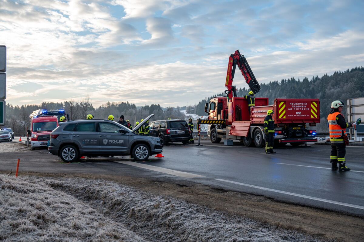TRAGWEIN. Ein Verkehrsunfall während des morgendlichen Frühverkehrs führte am Dienstag zu einer kurzfristigen Sperre der B124 in Tragwein.