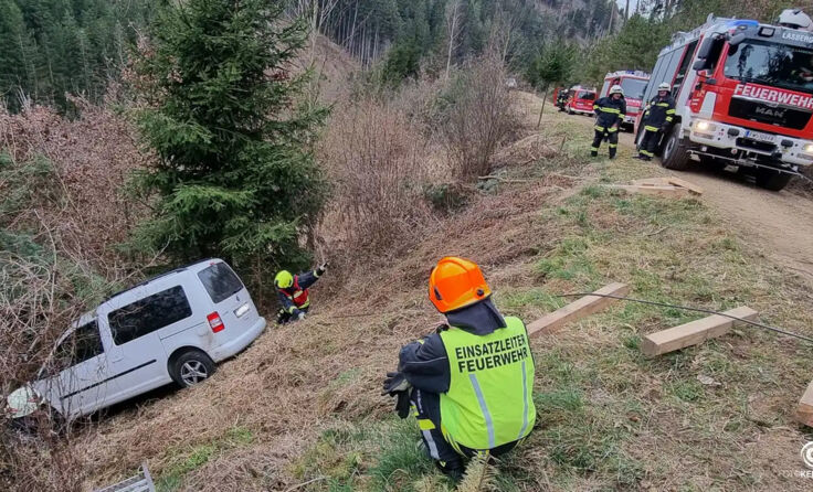 Glücklicherweise stoppte ein Baum die unkontrollierte Fahrt und verhinderte so einen noch größeren Sachschaden. Die Feuerwehr Lasberg sicherte das Fahrzeug sofort gegen weiteres Abrutschen. Mithilfe der Seilwinde des Rüstlöschfahrzeuges wurde der Pkw kontrolliert und zentimeterweise auf den befestigten Forstweg zurückgezogen.