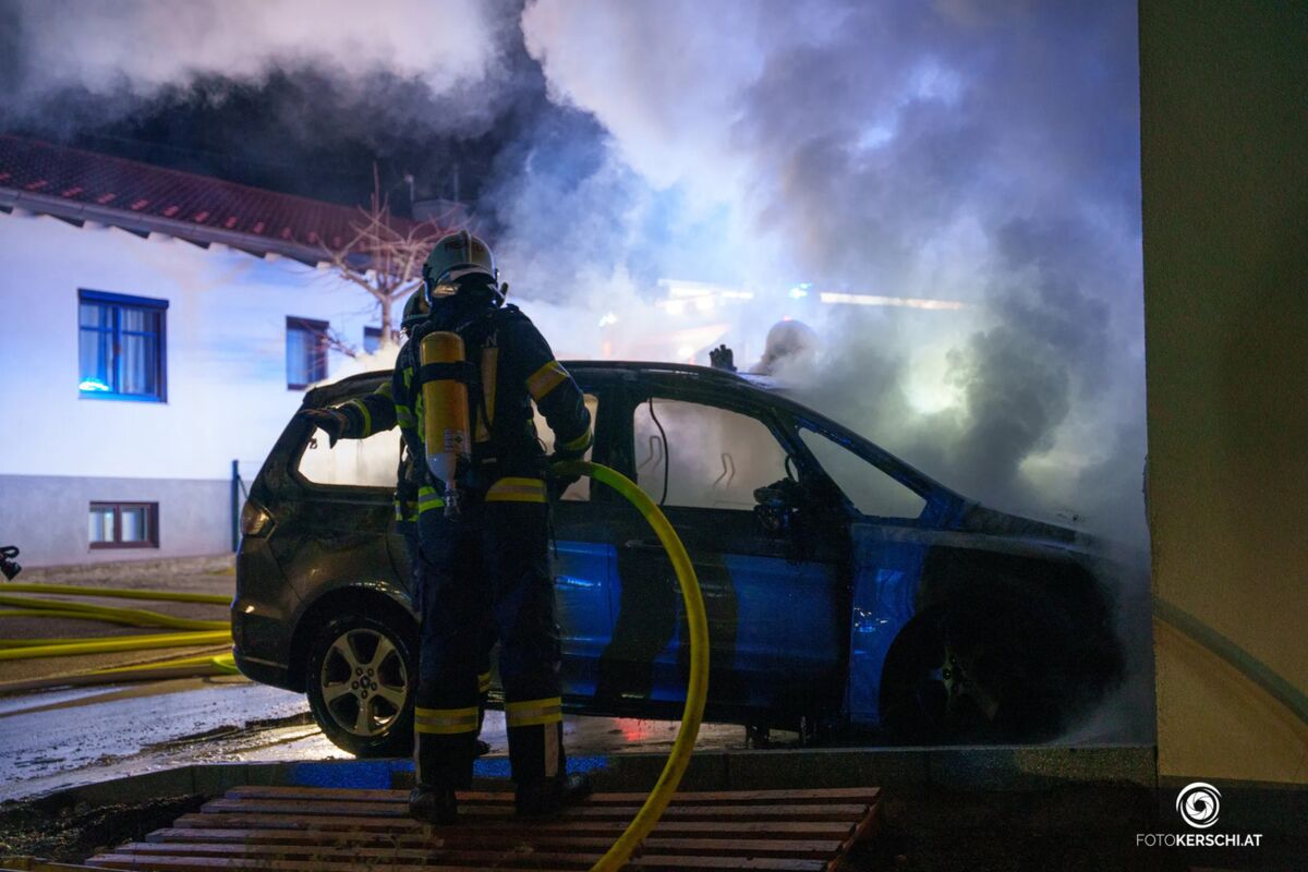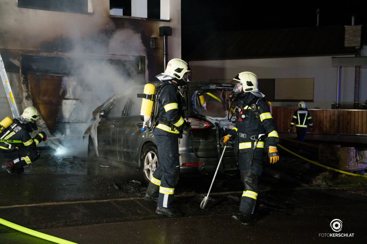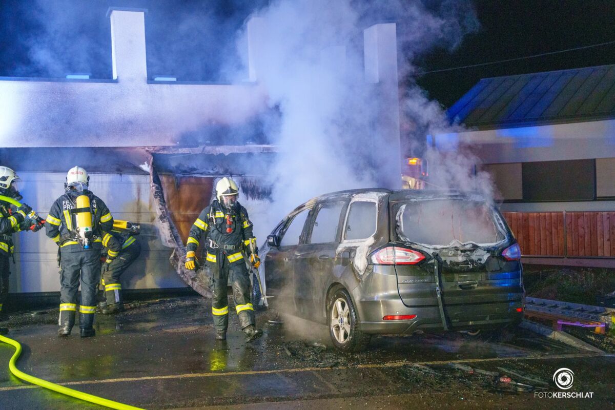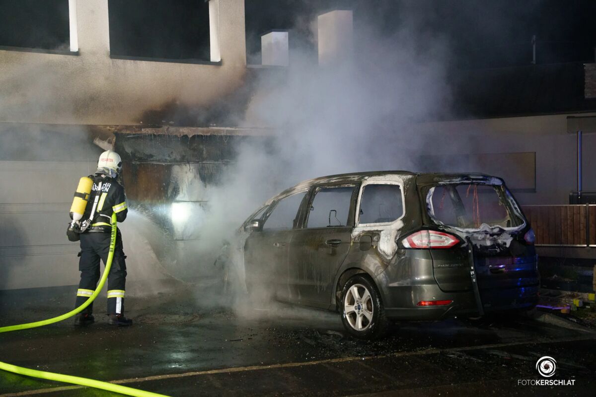 PREGARTEN. (Update) Am Montagabend ist im Ortsteil Grünbichl ein abgestellter Pkw in Flammen aufgegangen und hat in weiterer Folge auch eine angrenzende Garage beschädigt. verhindert werden.