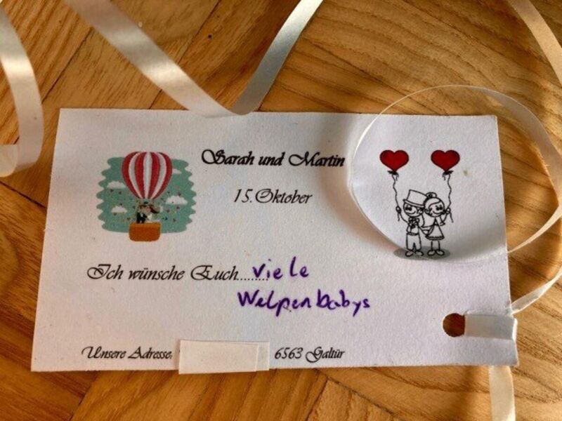 Vom Winde verweht, und zwar von Tirol ins Mühlviertel: „Bei unserem sonntäglichen Vormittagsspaziergang fanden wir am 16. Oktober gegen 9 Uhr in der Wiese einen blauen Luftballon mit einer Karte dran. Wir staunten nicht schlecht, als wir die Zeilen darauf lasen, denn der Luftballon wurde erst am Tag davor, am 15. Oktober, bei der Hochzeit von Sarah und Martin aus Galtür in Tirol gestartet“, berichtet das Paar aus Tragwein. „Zuhause fanden wir heraus, dass es sich bei dieser Strecke um 366,65 Kilometer Luftlinie handelte.“ Diese Strecke hat der Ballon innerhalb von einem Tag zurückgelegt. „Selbstverständlich werden wir dem Brautpaar schreiben, wo wir seinen Hochzeitsballon gefunden haben“, freuen sich Anna und Christian Aumayr darauf, das frisch vermählte Ehepaar damit zu überraschen.