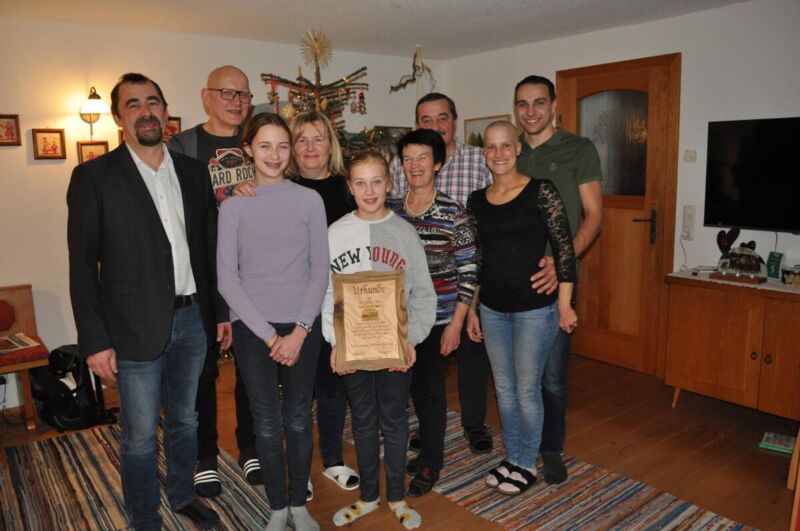Seitdem verbringt die vierköpfige Familie ihren Silvester- und Sommerurlaub am Bauernhof Mittereibenberger in Liebenau. Petra Schwabegger und Andreas Feckter kommen mit den beiden Mädchen Magdalena und Johanna seit zehn Jahren und genießen die Natur, die Ruhe, das gute Essen und mittlerweile die Freundschaft, die zur Familie Kollroß/Mühlbachler entstanden ist. Die Familie aus Wilhering im Bezirk Linz-Land hat natürlich für heuer schon wieder ihren Sommerurlaub gebucht. Die Mädchen sind so begeistert vom Bauernhofleben und der Arbeit, dass die ältere Tochter Magdalena und ihre Freundin Selina seit vier Jahren auch eine Woche alleine kommen und fleißig mithelfen. Sie stehen jeden Morgen und Abend im Melkstand und helfen beim Melken der 40 Milchkühe. Sie genießen den Tag so richtig in der Natur: Waldhäuschen bauen, Spazieren mit Pony, Hund und Katzen sowie Spielen am Spielplatz gehört dazu. Bürgermeister August Reichenberger überreichte den Gästen jüngst für ihre Treue eine selbstgemachte Urkunde aus Holz, angefertigt in der Handwerkstatt Mittereibenberger. Die Überraschungsparty zum Jubiläum war geglückt!