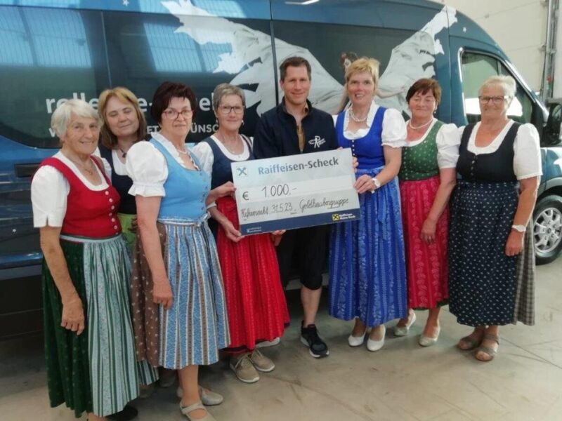KEFERMARKT. Die Goldhauben- und Kopftuchfrauen Kefermarkt, unter Obfrau Gabi Fischer, überreichten dem „Verein Rollende Engel“ am Stützpunkt Wels eine Spende von 1000 Euro.