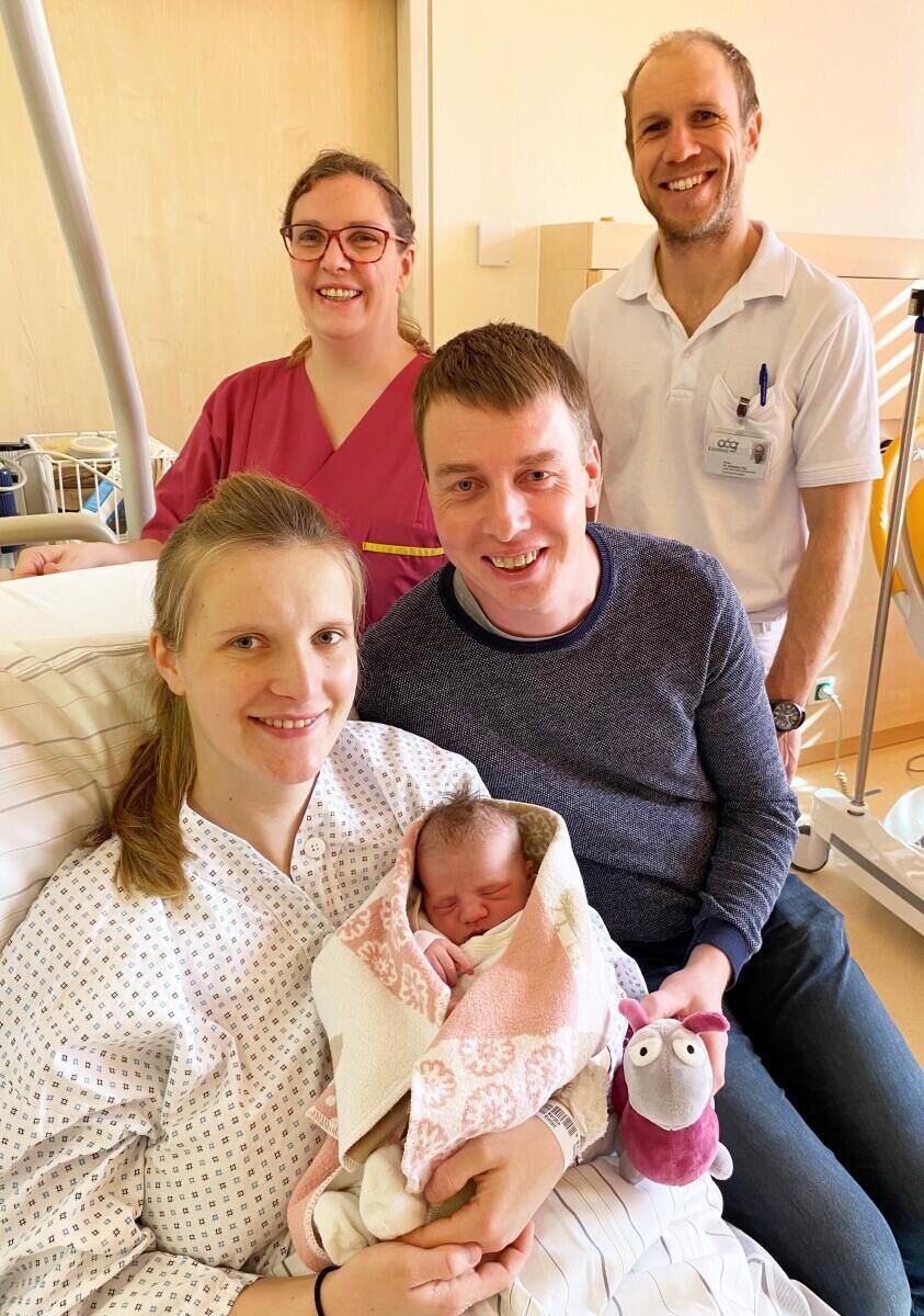 Die Eltern Kerstin Einfalt und Erich Klopf aus Gutau sind glücklich und sie nehmen das Datum gelassen: „Den Geburtstag hat sie sich selbst ausgesucht. Feiern werden wir den Geburtstag an den anderen Jahren am 28. Februar.“ Eva hat mit Lisa (2) bereits eine große Schwester. Hebamme Susanne Hofer und Prim. Dr. Sebastian Jülg freuen sich mit der Familie, die um 7:20 in der Geburtenstation im Klinikum Freistadt eintraf. 37 Minuten später hieß es bereits für Eva „Willkommen im Leben!“.