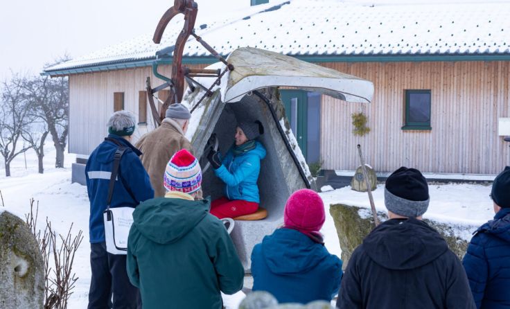 „Heuer konnte/musste ich die Jännerrallye mitverfolgen, weil diese direkt bei meinem Haus vorbeiführte und die Straße von der Früh weg gesperrt war. Je schneller und spektakulärer, umso besser! Ähnliche Muster, wie sie heute in unserem Gesellschafts- und Wirtschaftsleben vorherrschen: Leistung und Konsum müssen steigen, Tempo und Druck erhöhen. Ja, man könnte begeistert sein, gäbe es da nicht auch eine andere Seite dazu: Die Natur hält uns schon einige Zeit mit ähnlichen Mustern einen Spiegel vor: noch höhere Temperaturen, noch stärkere Stürme, Rekordniederschläge in kürzester Zeit, …Und in der Gesellschaft wird auch einiges sichtbar: Überforderung und Burnout werden immer mehr, Orientierungslosigkeit, Flucht in die Resignation. Für mich ist ein Weiter wie bisher schon länger nicht mehr tragbar. Daher habe ich am Rallyetag zu einer Kunst- bzw. Skulpturenwanderung als Alternative zur Rallye eingeladen. Sechs Kunstobjekte von Gerhard Eilmsteiner waren gedankliche Impulsgeber und Anlass für intensive Gespräche und Diskussionen zu unseren heutigen gesellschaftspolitischen Herausforderungen und möglichen Lösungsansätzen. Es freut mich, dass diese Wanderung gute Anstöße zum Nachdenken und Umdenken gab. Umdenken ist der Beginn jeder Veränderung. Die Entscheidung etwas zu ändern hat jeder – und das jeden Tag! Die positiven Erfahrungen mit diesen geführten Wanderungen ermutigen mich, diese laufend anzubieten – bei Interesse bitte melden!“