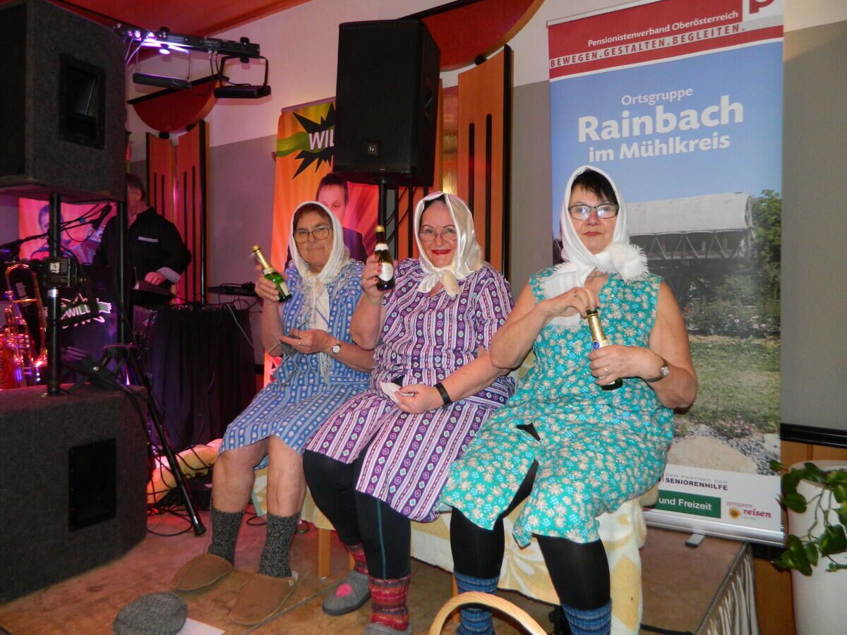 RAINBACH. Die „Sektdrosseln Resl, Kathl und Miazl“ sorgten beim Tanzkränzchen des Pensionistenverbandes Rainbach für viele Lacher.