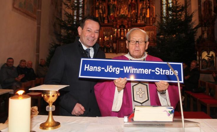 KÖNIGSWIESEN. Eine besondere Ehre wurde Altpfarrer Hans-Jörg Wimmer anlässlich seines 85. Geburtstages zuteil: Die Marktgemeinde Königswiesen hat den Straßenzug zwischen Marktplatz und Raiffeisenbank in Hans-Jörg-Wimmer-Straße umbenannt.
