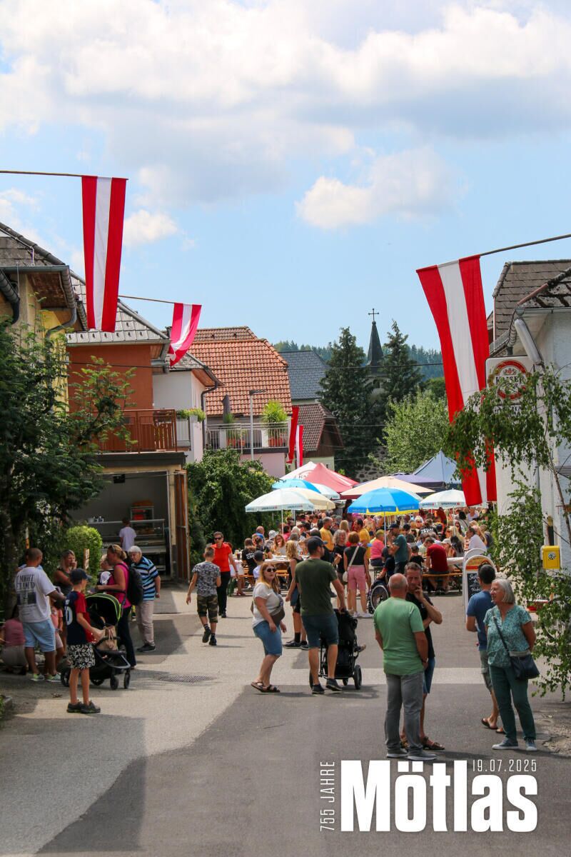 Schon am Vormittag verwandelte sich das Dorf in eine lebendige Festmeile, die für Jung und Alt ein abwechslungsreiches Programm bereithielt. Zahlreiche Besucher aus der Umgebung und auch ehemalige Mötlinger, die für diesen besonderen Anlass angereist waren, ließen sich das Jubiläum nicht entgehen.