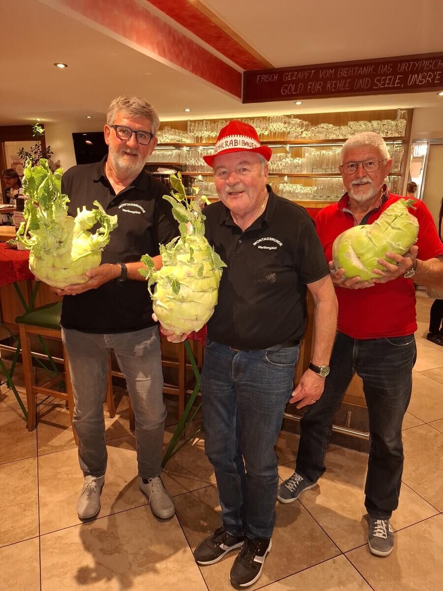 WARTBERG. Das Kohlrabi-Fest der Montagsrunde im Wiaz`Haus Dinghofer in Wartberg brachte heuer einen neuen Rekord: Das Sieger-Gemüse brachte 9,4 Kilo auf die Waage.