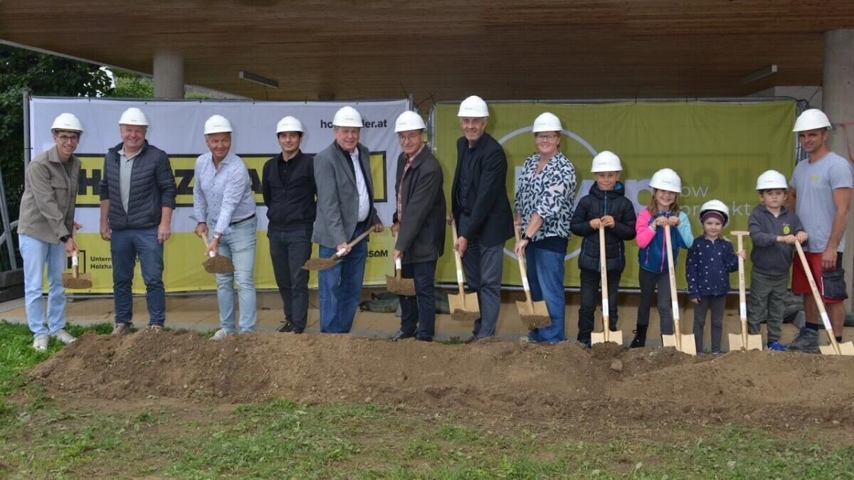 Das aktuelle Schulgebäude wurde im Jahr 1902 fertig gestellt. Bei der Spatenstichfeier waren neben Bürgermeister Josef Eilmsteiner an der Spitze der Gemeindevertretung auch Baumeister Werner Berger und Projektleiter Werner Hödlmayer-Leopoldseder, Vertreter der Baufirma Holzhaider sowie die Direktorin der Volksschule Michaela Leitner mit Schulkindern dabei.