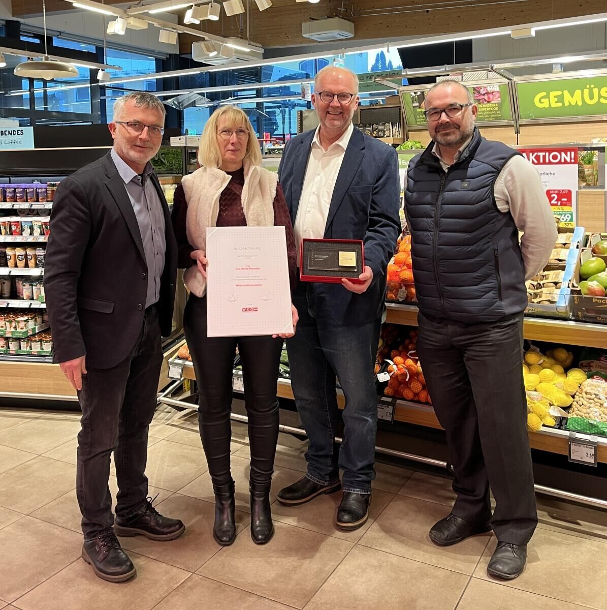 Der Spar-Markt Gerner ist seit Jahrzehnten ein wichtiger Nahversorger des Großraums Unterweißenbach. Der Betrieb wird von Geschäftsführerin Eva Maria Haneder geleitet. 2017 wurden der Markt und die Tiefgarage nicht nur einem kompletten Neubau unterzogen und auf 850 Quadratmeter erweitert, es wurden auch neue Arbeitsplätze geschaffen: derzeit sind 30 Mitarbeiter beschäftigt. Ganz bewusst haben sich Eva Maria und Manfred Haneder dazu entschieden, mit ihrem Spar-Markt dem Ortszentrum treu zu bleiben. Dazu gratulierte die WKO Freistadt gemeinsam mit Wirtschaftsbund-Obmann Andreas Pointner aus Unterweißenbach mit einer Wirtschaftsmedaille.