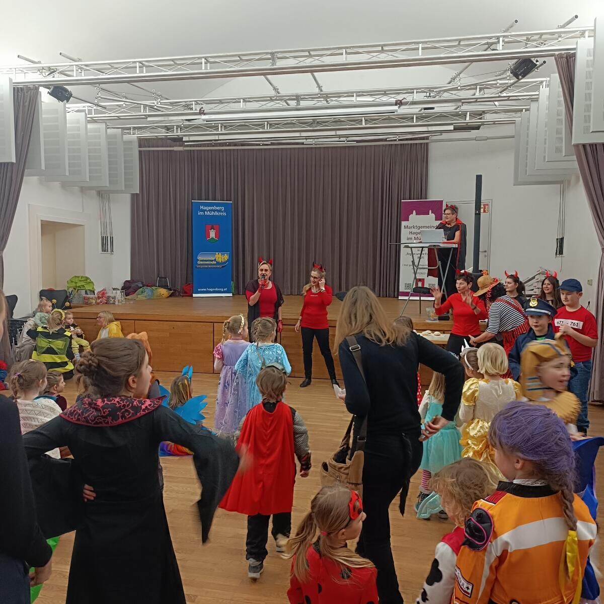 Bis in die frühen Morgenstunden wurde beim Faschingsball der Pfarrgemeinde ausgelassen gefeiert und getanzt. Ein paar Stunden später luden die Marktgemeinde und die Fraktionen zu einem Faschingsumzug unter dem Motto „Hagenberg goes Cinema“ ein. Der Musikverein Hagenberg begleitete den lustigen maskierten Zug und zum Abschluss fand die Maskenprämierung am roten Platz beim Schloss Hagenberg statt.