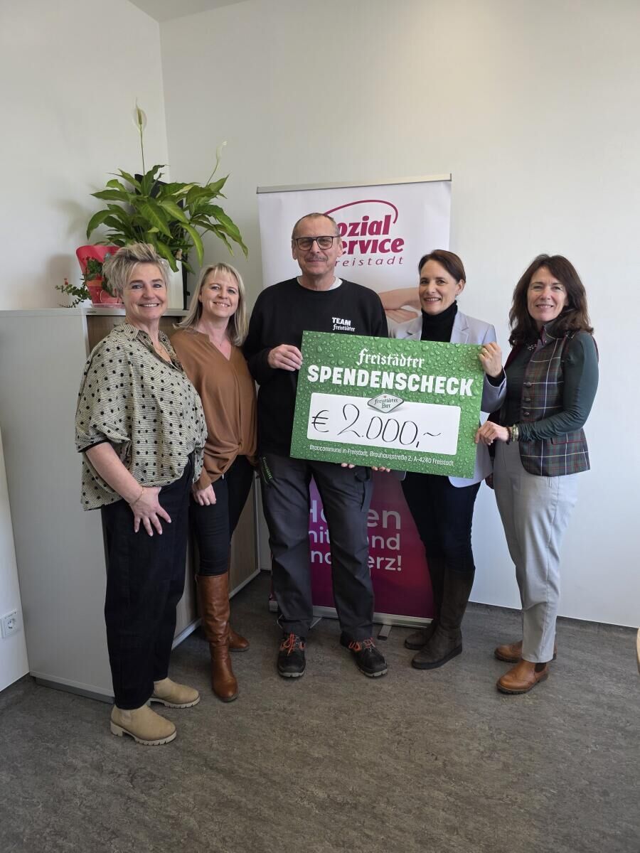 FREISTADT. Ein starkes Zeichen der regionalen Verbundenheit und sozialen Verantwortung setzen die Mitarbeiter der Braucommune in Freistadt und des Freistädter Braugasthof mit einer Spende in Höhe von 2.000 Euro an das Sozialservice Freistadt.