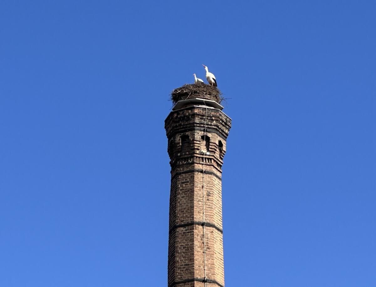 FREISTADT. Zwei Störche sind wieder auf dem Schlot der Braucommune Freistadt gelandet.