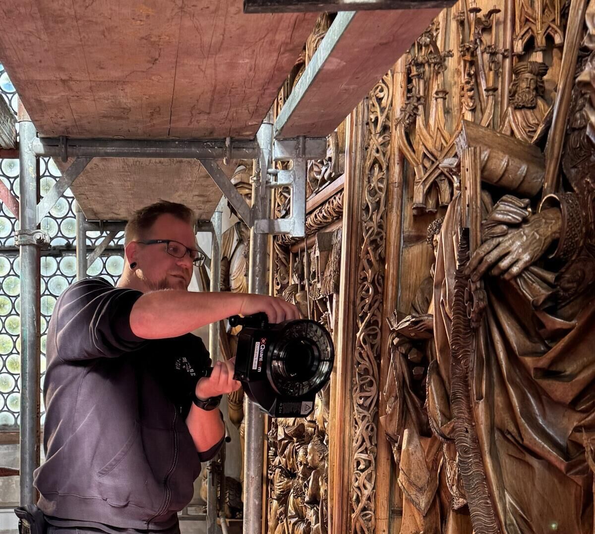 Der in Niederösterreich lebende Christoph Schindelar gilt als einer der profiliertesten Anwender und Entwickler von Digitalen Aufnahmetechniken, mit denen Objekte im virtuellen Raum erstaunlich realistisch und detailliert dargestellt werden können. Im Sommer vorigen Jahres hatte er sich die Pfarrkirche Kefermarkt mit dem Flügelaltar als „Testobjekt“ für seine allerneuerste Technik ausgewählt. Die Verantwortlichen vor Ort unterstützten ihn dabei.
