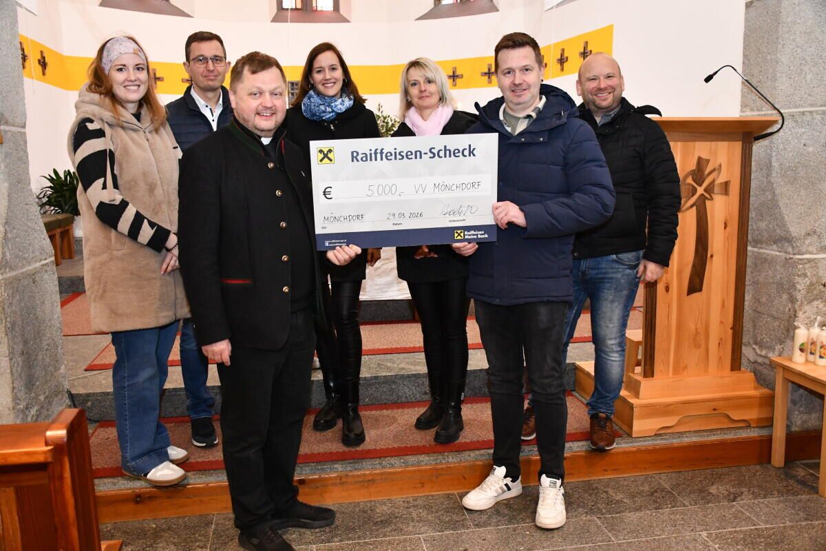 MÖNCHDORF. Der Verschönerungsverein Mönchdorf überreichte der Pfarre eine Spende von 5000 Euro für die Erneuerung des Kirchendaches.