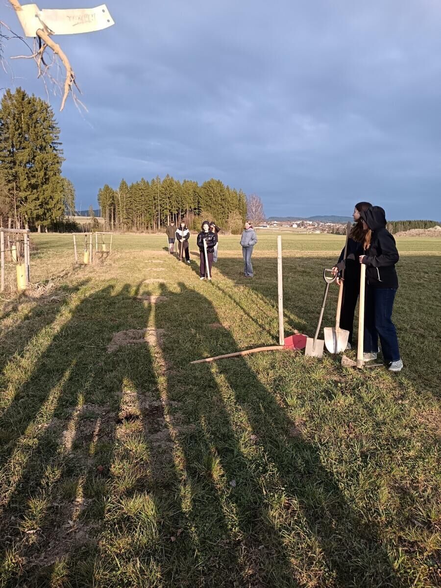 Der Energiebezirk hat den Schülern die Bäume zur Verfügung gestellt, die Ende März in der Pirau beim Wasserhäusl in Summerau gepflanzt werden konnten. Die Mädchen und Burschen packten dabei tatkräftig mit an.
