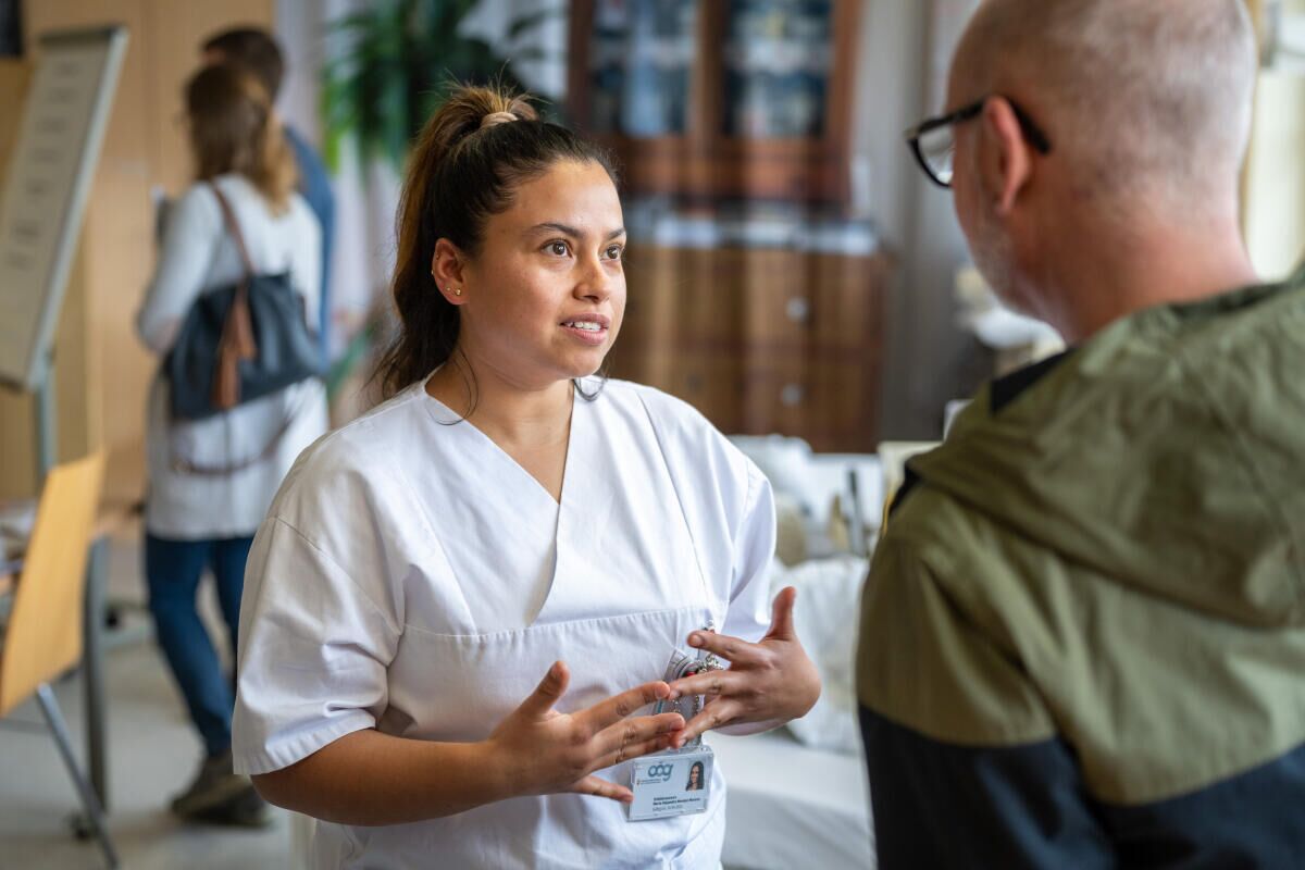 Die Lehrkräfte und aktuellen Auszubildenden stehen bereit, um einen realen Einblick in die vielfältige Welt der Pflege zu geben. Besucher sollen eine klare Vorstellung davon bekommen, was es heißt, professionell zu pflegen und welche Kompetenzen dazu nötig sind. Besonders spannend dabei, die Art und Weise, wie wir Wissen vermitteln. Beispielsweise besteht die Möglichkeit praktische Erfahrungen bei der Vitalzeichenkontrolle, der Blutabnahme, dem Blutzuckermessen oder beim Wundschminken zu sammeln und Teil einer Pflegesimulation zu sein. „Wir bieten unseren Auszubildenden eine große Vielfalt an Lehr- und Lernangeboten, um die geforderten Kompetenzen zu erreichen. Es ist uns wichtig, dass Patienten sich auf eine individuelle Pflege verlassen können und dass unsere Absolventen auch in herausfordernden Situationen bestehen können“, sagt Standortleiterin Annemarie Doppler.