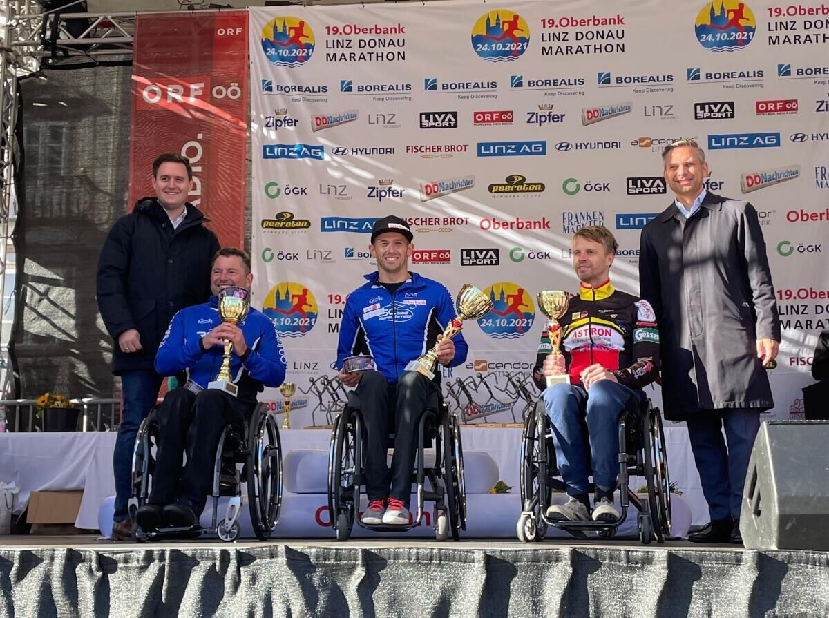 Es war dies die viertschnellste Zeit, die je ein Handbiker in Linz absolvierte. „Das Ergebnis war von der Zeit her ganz in Ordnung. Es freut mich, dass ich mich nach Thomas Frühwirth und Walter Ablinger in die Riege der Sieger einreihen kann. Dadurch, dass der Oberbank Linz Marathon als allererstes Handbikerennen nach meinem Unfall ein besonderes Rennen für mich ist, freut es mich nun umso mehr“, so der Silbermedaillengewinner von Tokio über sein Heimrennen. Obwohl die Saison jetzt mittlerweile schon sehr lange dauert, gibt es für den Oberösterreicher mit der WM in Abu Dhabi aber heuer noch ein weiteres Highlight: „Der Aufbau geht jetzt weiter. Jetzt heißt es die leichte Verkühlung ganz auszukurieren. Dann geht es zurück ins Wasser und mit dem Handbike auf die Walze. Ich hoffe, dass das dann Anfang November in Abu Dhabi ganz gut klappen wird.“