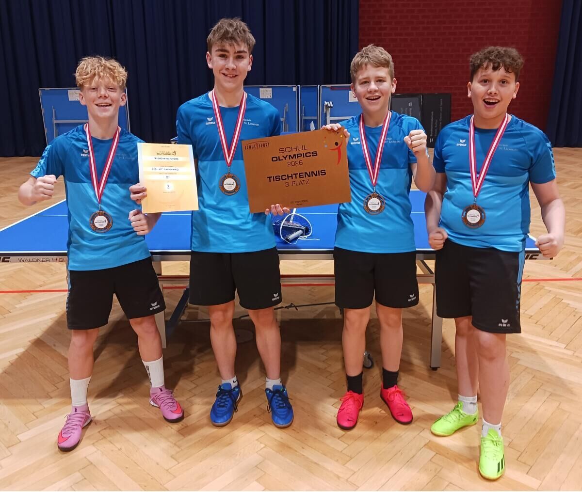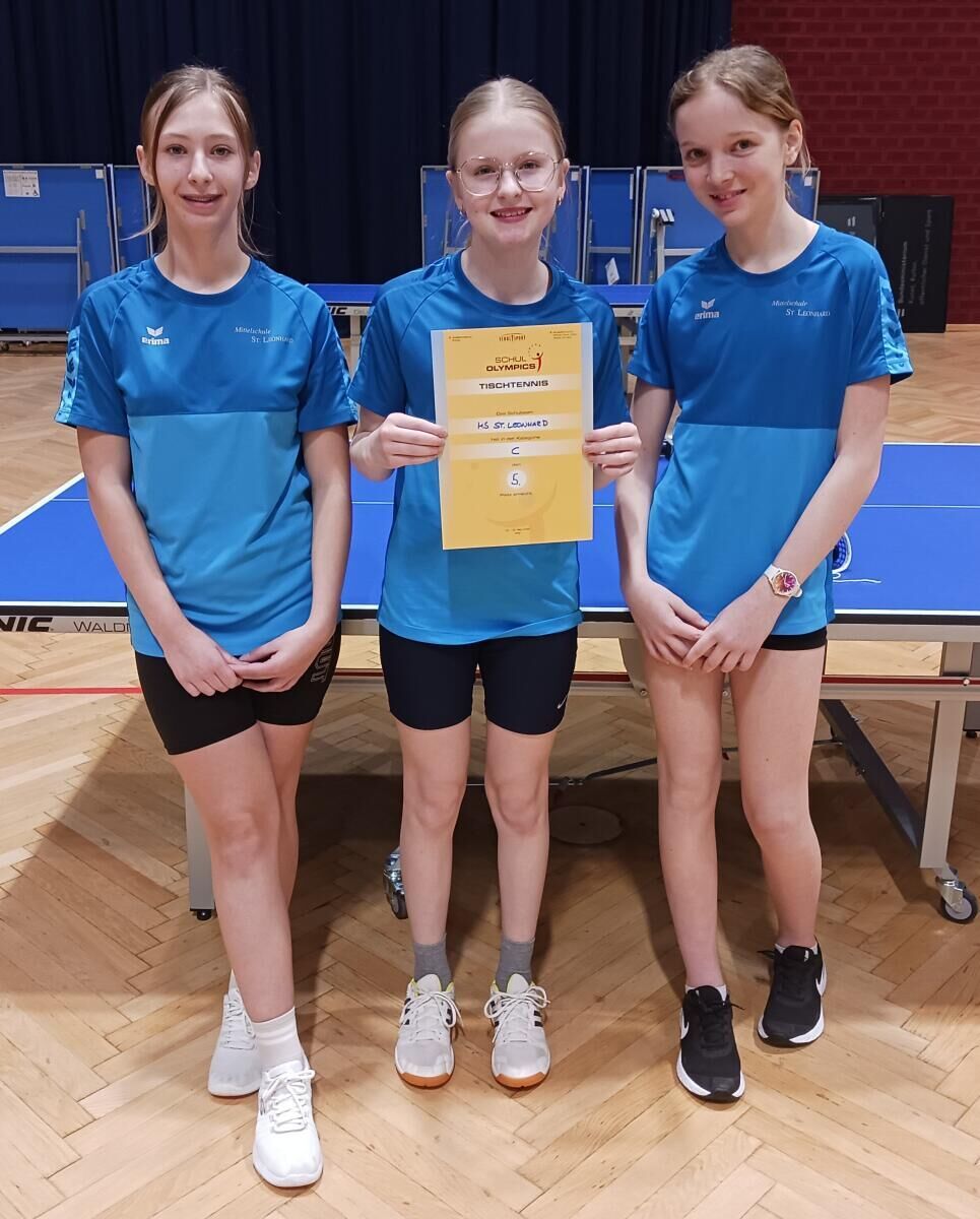 In Wien fanden die Tischtennis-Bundesmeisterschaft für Schulen statt. Die Mittelschule St. Leonhard vertrat Oberösterreich gleich mit zwei Mannschaften bei diesem Turnier. Die Mädchen belegten den hervorragenden fünften Platz. Die Burschen besiegten in einem spannenden Spiel um Platz drei die Sportmittelschule Weiz aus der Steiermark und konnten daher über die Bronzemedaille jubeln.