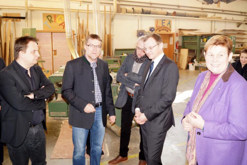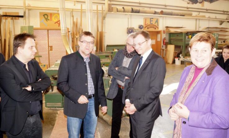 FREISTADT. OÖVP Klubobmann Thomas Stelzer war kürzlich gemeinsam mit Bezirksparteiobmann Bürgermeister Christian Jachs, LAbg Maria Jachs und LAbg Gabriele Lackner-Strauss zu Besuch bei den Freiwaldwerkstätten. Christoph Eichinger, Projektleitung Freistadt, stellte die Freiwaldwerkstätten vor und informierte unter anderem darüber, dass die Freiwaldwerkstätten ein sozialökonomischer Betrieb von FAB Reno OÖ sind. Arbeitsuchende Personen haben durch eine befristete Anstellung die Möglichkeit einer fachlichen Qualifizierung und persönlichen Weiterentwicklung. Ziel ist die Wiedereingliederung in den primären Arbeitsmarkt. Die Dienstleistungen erfolgen unter anderem in den Bereichen HolzArtNaturraum, Servicedrehscheiben, Gemeinnützige Arbeitskräfteüberlassung.