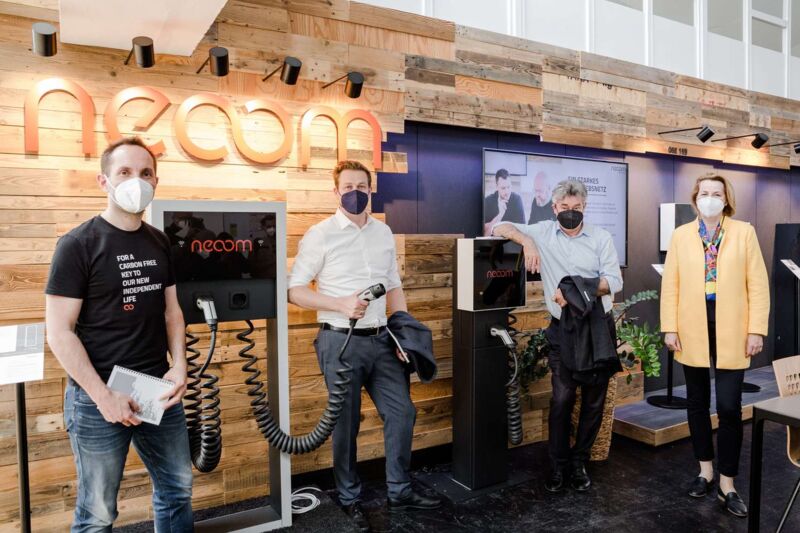 FREISTADT. Vizekanzler Werner Kogler und Klima-Landesrat Stefan Kaineder waren bei ihrem vom Innovationsgeist des Freistädter Unternehmers Walter Kreisel und seinem Unternehmen Neoom beeindruckt. Neoom setzt mit Hilfe von Batteriespeichern, Ladestationen und intelligenter Software auf dezentrale Energieversorgung auf Basis erneuerbarer Energien, um damit einerseits Gebäude mit sauberem Strom zu versorgen und andererseits die Elektromobilität voranzutreiben.
