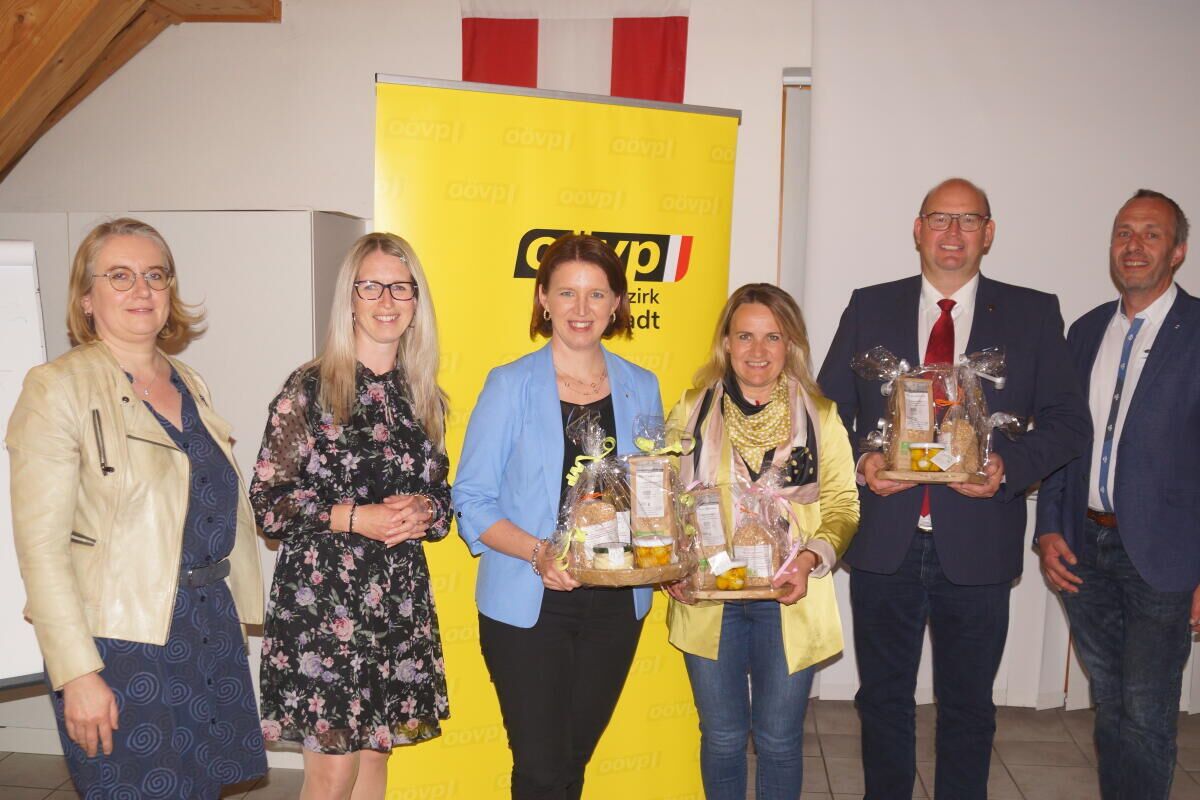 Sandra Füreder wird von folgendem Team unterstützt: Bürgermeister Josef Eilmsteiner und Reinhard Hackl als stellvertretende Parteiobleute, Isabella Eilmsteiner als Finanzreferentin, Anita Kolberger als Organisationsreferentin, Florian Mayr als Bildungsreferent, Leopoldine Miesenböck als Vertreterin der Senioren, Kathrin Leitner und Michaela Kitzberger als Finanzprüfer. In Ihrem Referat berichtete Michaela Langer-Weninger über aktuelle Themen aus der OÖ Landespolitik, auch der Krieg in der Ukraine und die Herausforderungen, die damit verbunden sind, waren Themen des Referats. Für die langjährige Mitarbeit in der Gemeinderatsfraktion wurde Elisabeth Lorenz mit dem Verdienstzeichen der OÖ Volkspartei ausgezeichnet