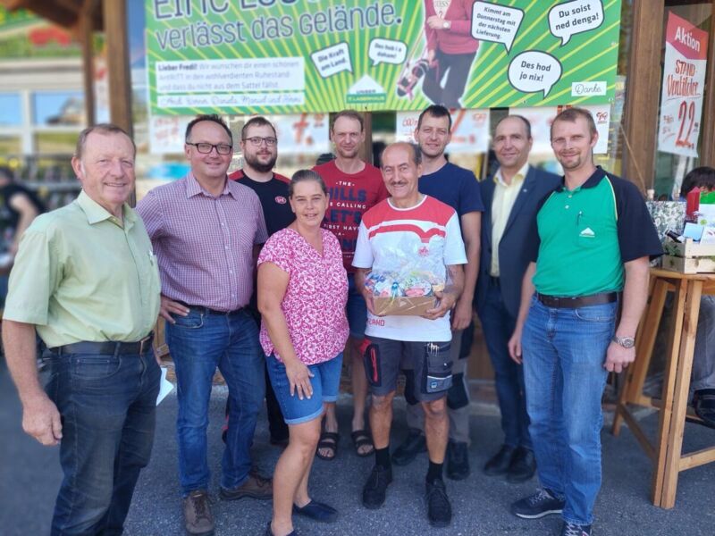 „Rund 40 Jahre hast du in unserer Genossenschaft Führungsverantwortung getragen, in Schönau 60 Millionen Euro Umsatz und 300.000 Euro Reingewinn gemacht. Ich kann mir nicht vorstellen, dass das noch einer erreicht“, betonte der Geschäftsführer, nicht ohne Aumayers spitzbübischen Humor und seine legendären handgeschriebenen Plakate zu erwähnen. Aumayer nützte die große Feier, um sich bei allen Wegbegleitern, vor allem aber bei seinen Kollegen, zu bedanken. Seinem Nachfolger Andreas Brandstetter wünschte er viel Erfolg. „Schönau hat die 2.000-Einwohner-Marke überschritten, vielleicht wird es jetzt bald was mit dem Neubau der Lagerhaus-Filiale Schönau“, schloss er schmunzelnd.