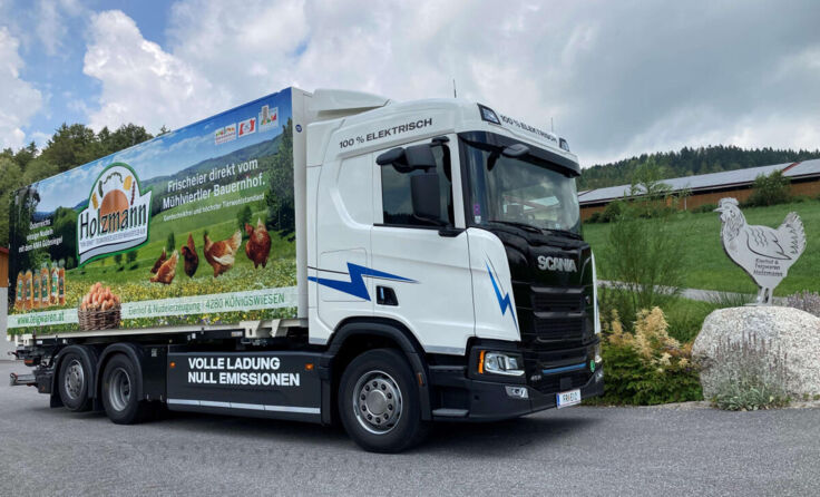 KÖNIGSWIESEN. Seit vielen Jahren wirtschaftet der Betrieb Eierhof & Teigwarenerzeugung von Sonja und Leopold Holzmann in Königswiesen energieautark. Nun ist ab sofort auch die komplette Futtermittel- und LKW-Auslieferungslogistik emissionsfrei und rein elektrisch unterwegs.