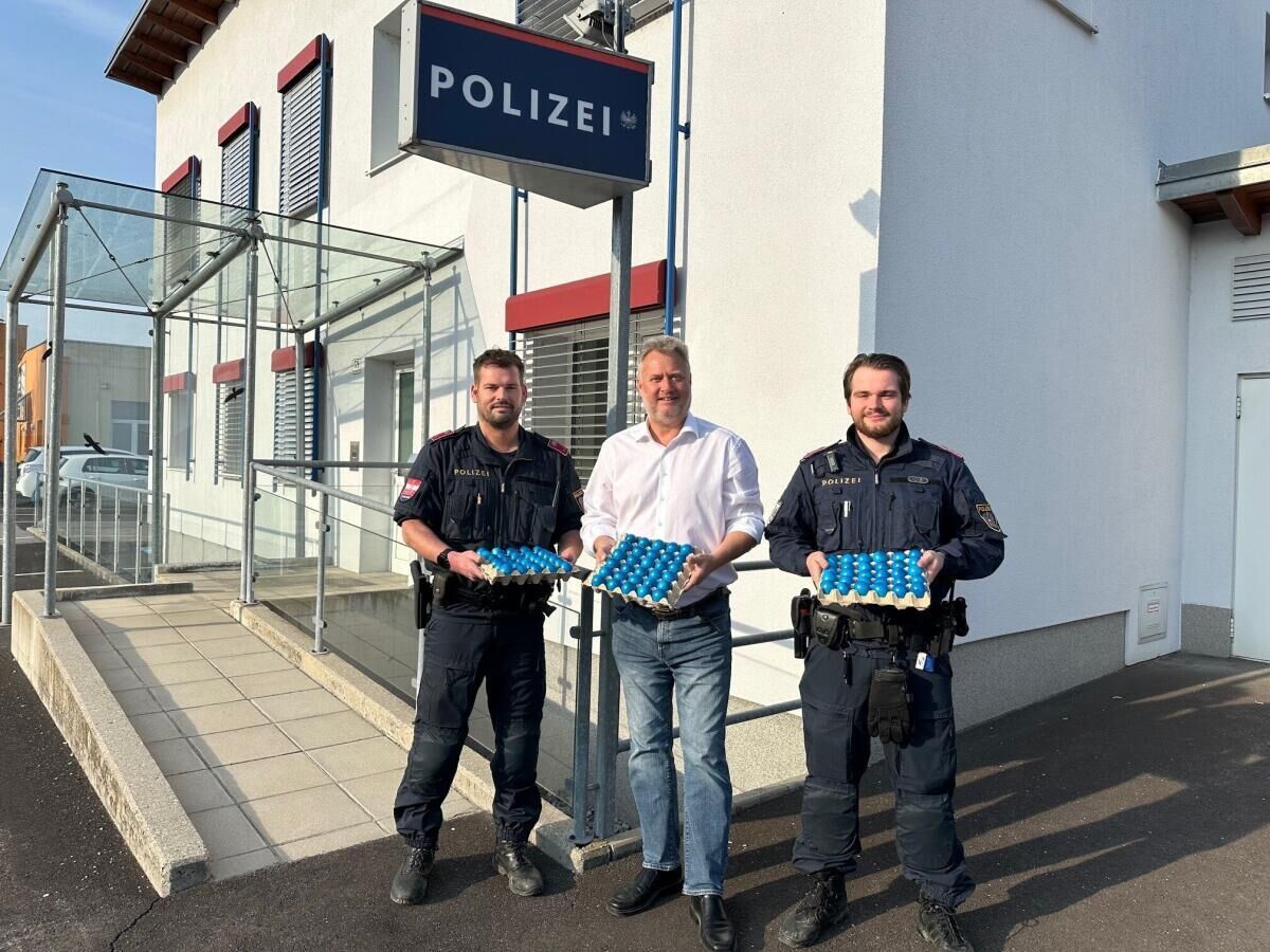 PREGARTEN. Mit Ostereiern überraschte Landtagsabgeordneter Peter Handlos die Mitarbeiter des Polizeipostens Pregarten.