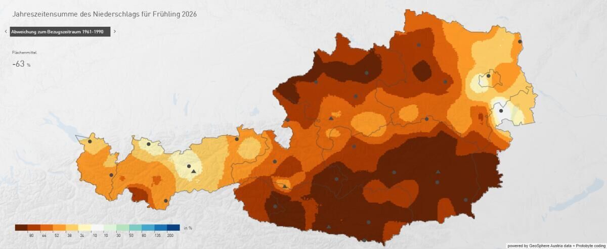 Auch in Freistadt zeigt sich jedoch die Entwicklung deutlich: In den vergangenen Monaten fiel zu wenig Niederschlag. Zwar brachte die zweite Februarhälfte kurzfristig Entspannung, doch bereits im März setzte erneut Trockenheit ein. Die Wasserbilanz der vergangenen Wochen liegt vielerorts im Minus.