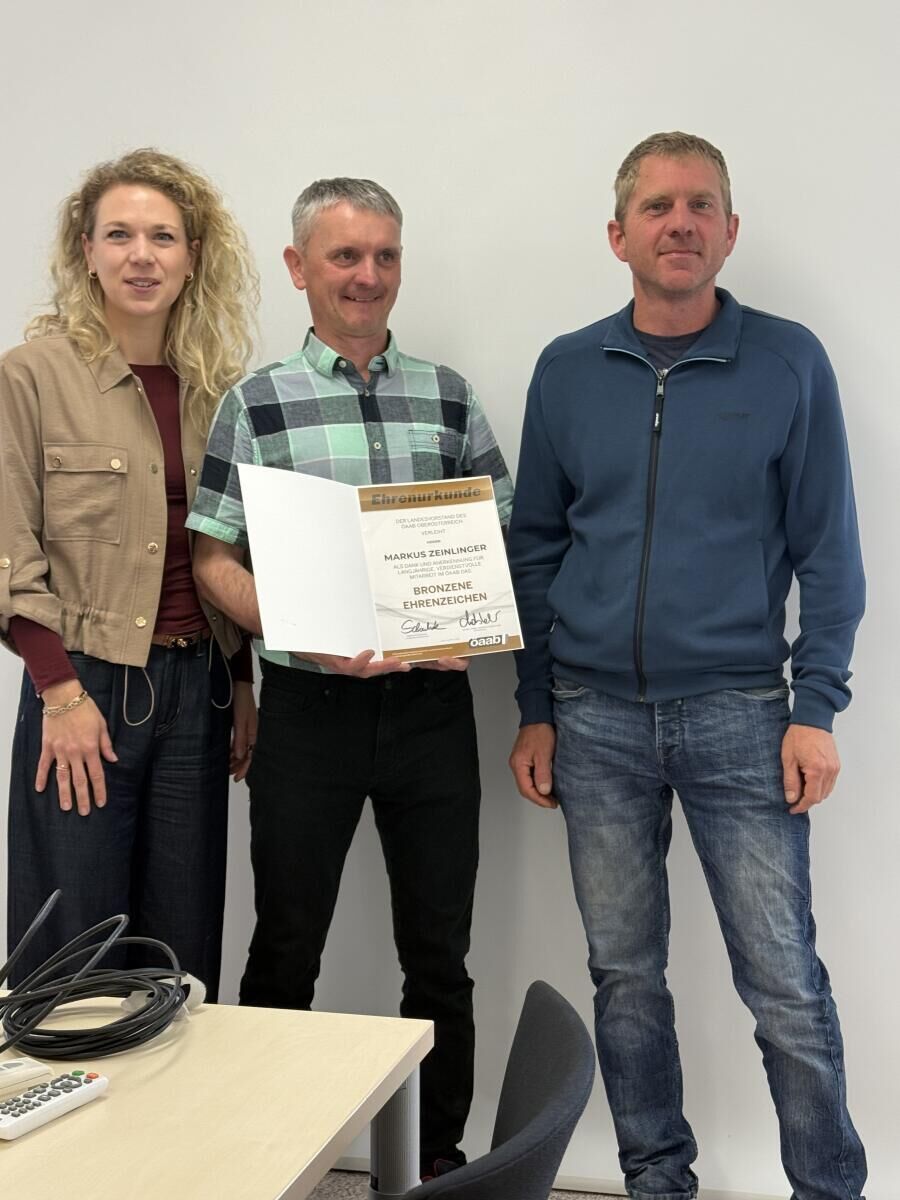 ÖAAB Bezirksobfrau Johanna Jachs konnte im Rahmen der Veranstaltung Mitglieder der ÖAAB Betriebsgruppe Straßenmeisterei Pregarten für ihre langjährige Mitgliedschaft zum ehren. Der langjährige Obmann Markus Zeinlinger wurde mit dem Ehrenzeichen in Bronze ausgezeichnet. Johann Aberl, Jürgen Mai und Manfred Oyrer wurden für 25-jährige Mitgliedschaft geehrt. Eduard Jank erhielt die Auszeichnung für 40-jährige Mitgliedschaft.