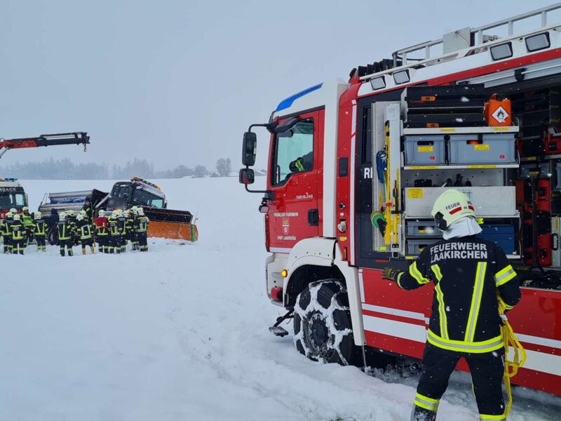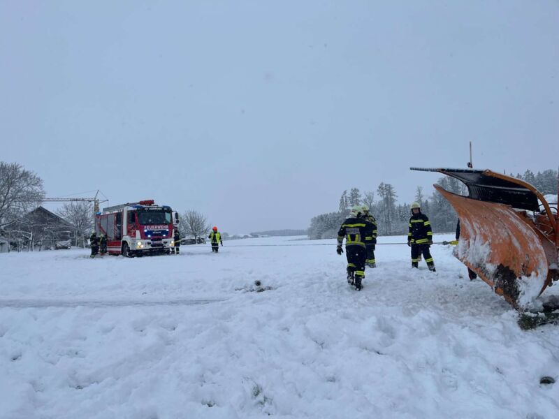 Schneeräumfahrzeug kam von der Straße ab und musste von der Feuerwehr geborgen werden