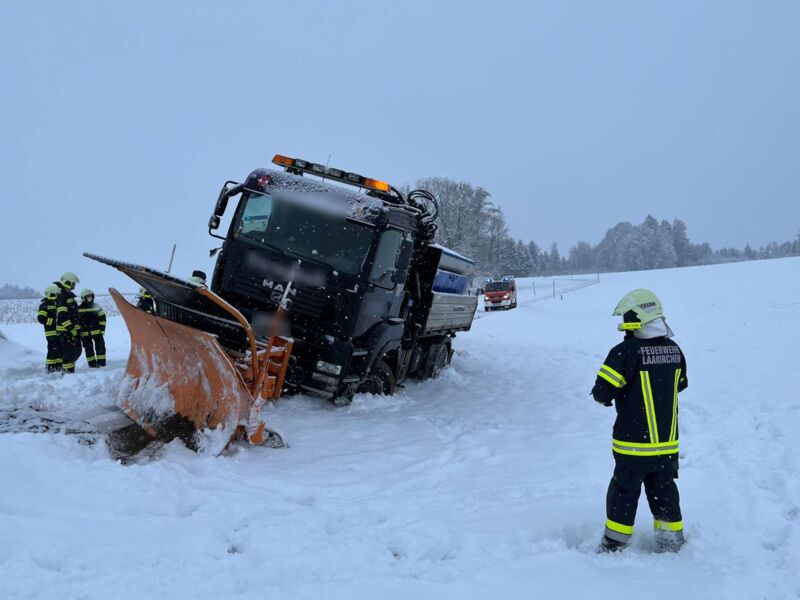 LAAKIRCHEN. Samstagvormittag ist in der Ortschaft Humpling in Laakirchen ein Schneeräumfahrzeug von der Straße abgekommen, die Feuerwehr musste es bergen.