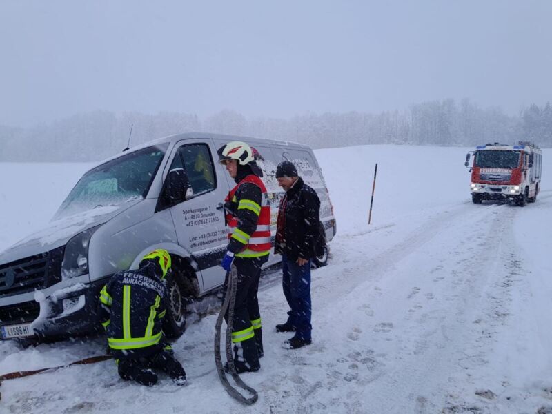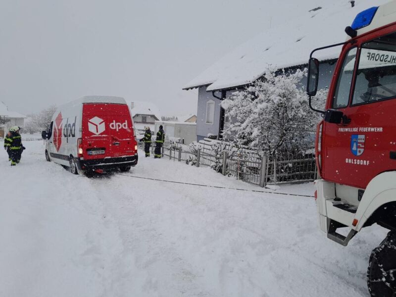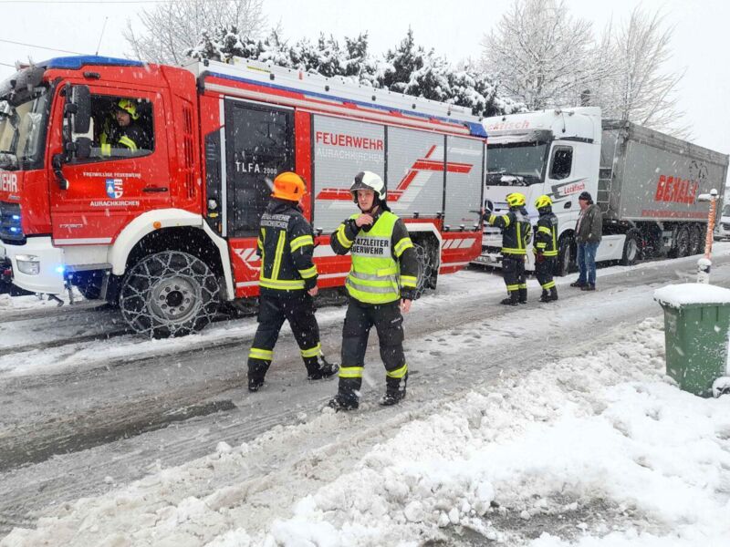 Ähnlich das Bild in Ohlsdorf, wo die Feuerwehren Ohlsdorf und Aurachkirchen viel Arbeit mit hängengebliebenen Fahrzeugen und dergleichen hatten. Da die Bundesstraße und teilweise die Autobahn erschwert passierbar waren, versuchten zahlreiche Verkehrsteilnehmer Ohlsdorf als Ausweichstrecke zu nützen; und blieben hängen oder kamen von der Straße ab. Teilweise musste die Landesstraße komplett gesperrt werden.