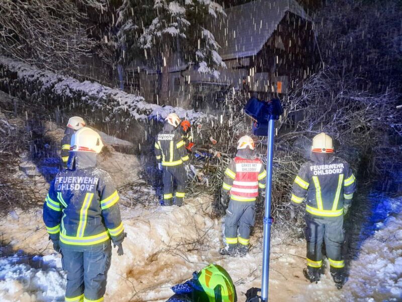 „Die Situation ist enorm angespannt. Der schwere Schnee droht weitere Bäume zu fällen. Für Freitag werden am Abend zusätzlich starke Böen gemeldet, was die Situation weiter verschlechtert“, teilt die FF Ohlsdorf mit und appelliert gleichzeitig an alle Bürger: „Bitte führen Sie nur wichtige Fahrten durch, vermeiden Sie Waldgebiete wie etwa den Haselwald in Ohlsdorf:“