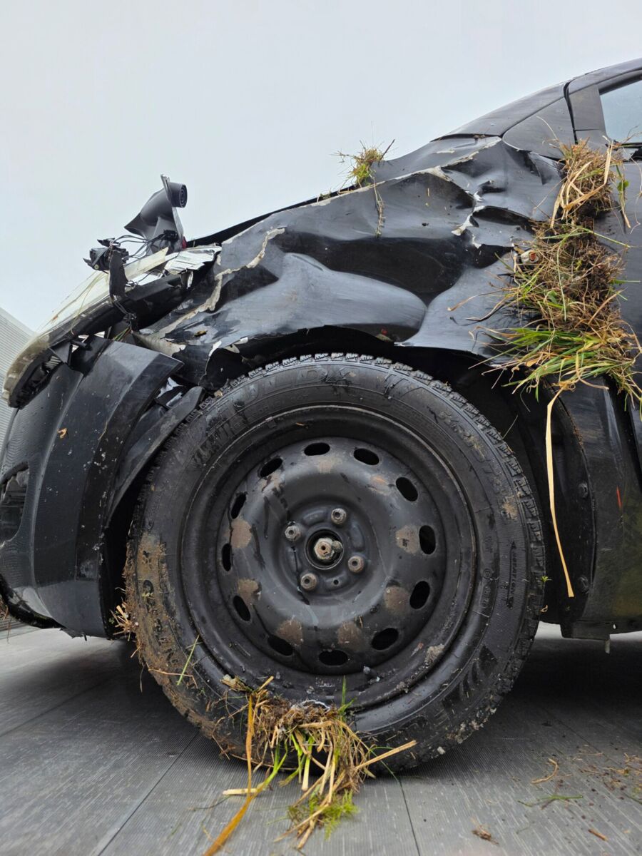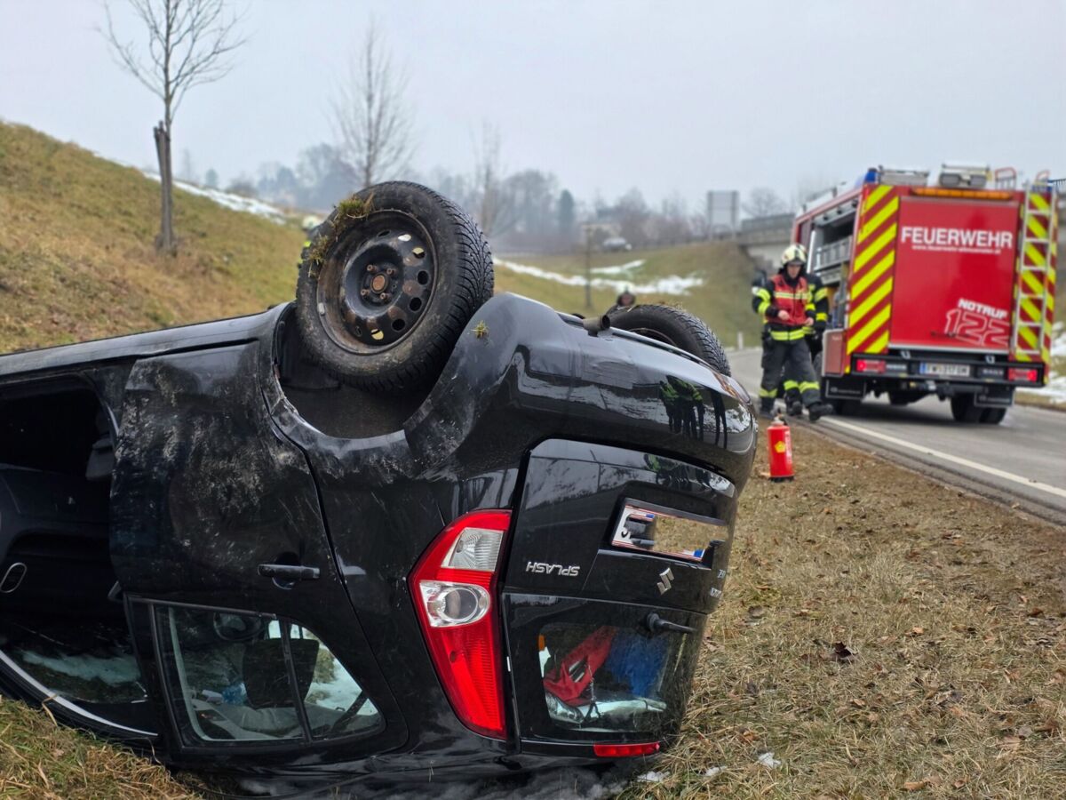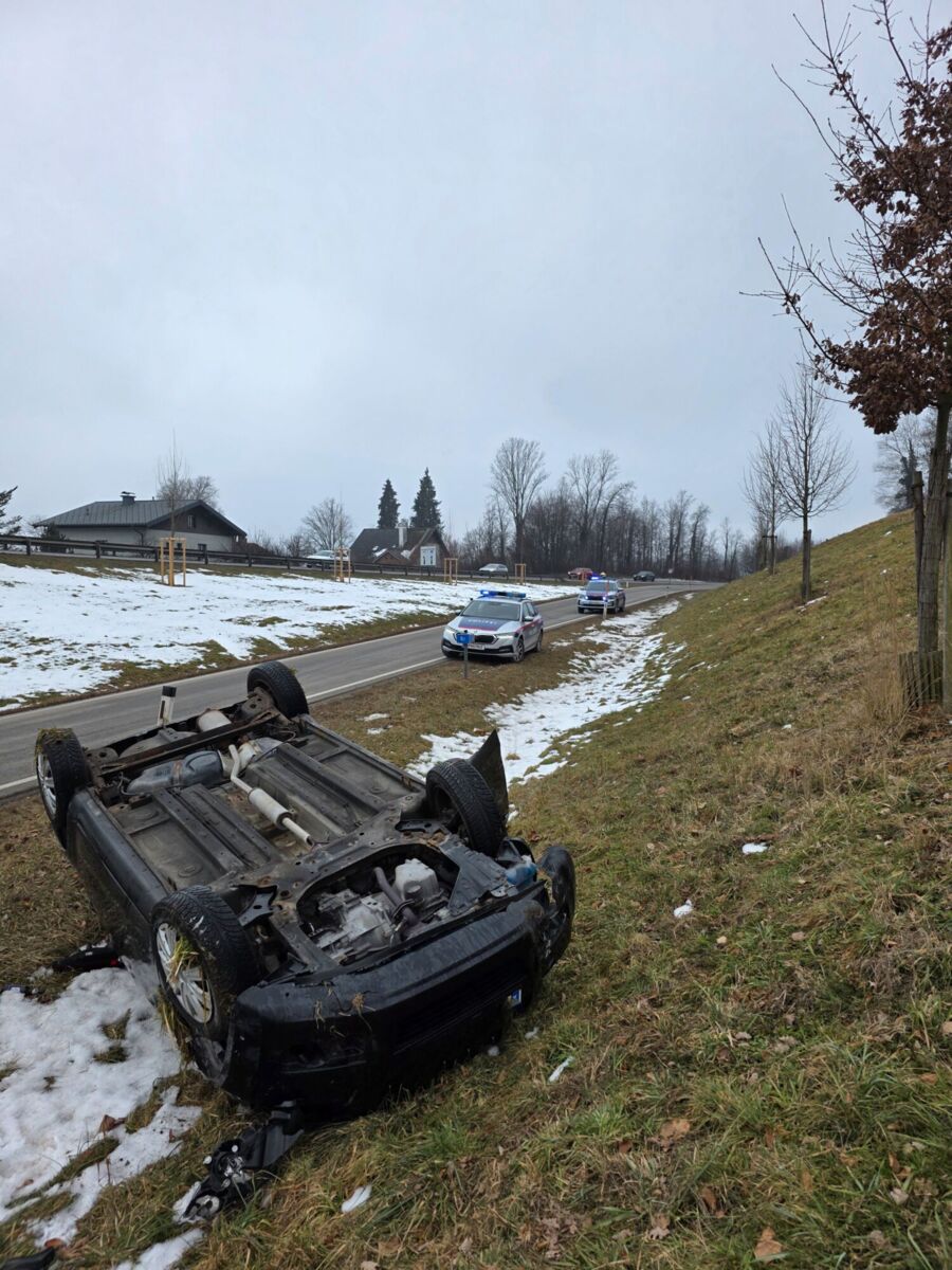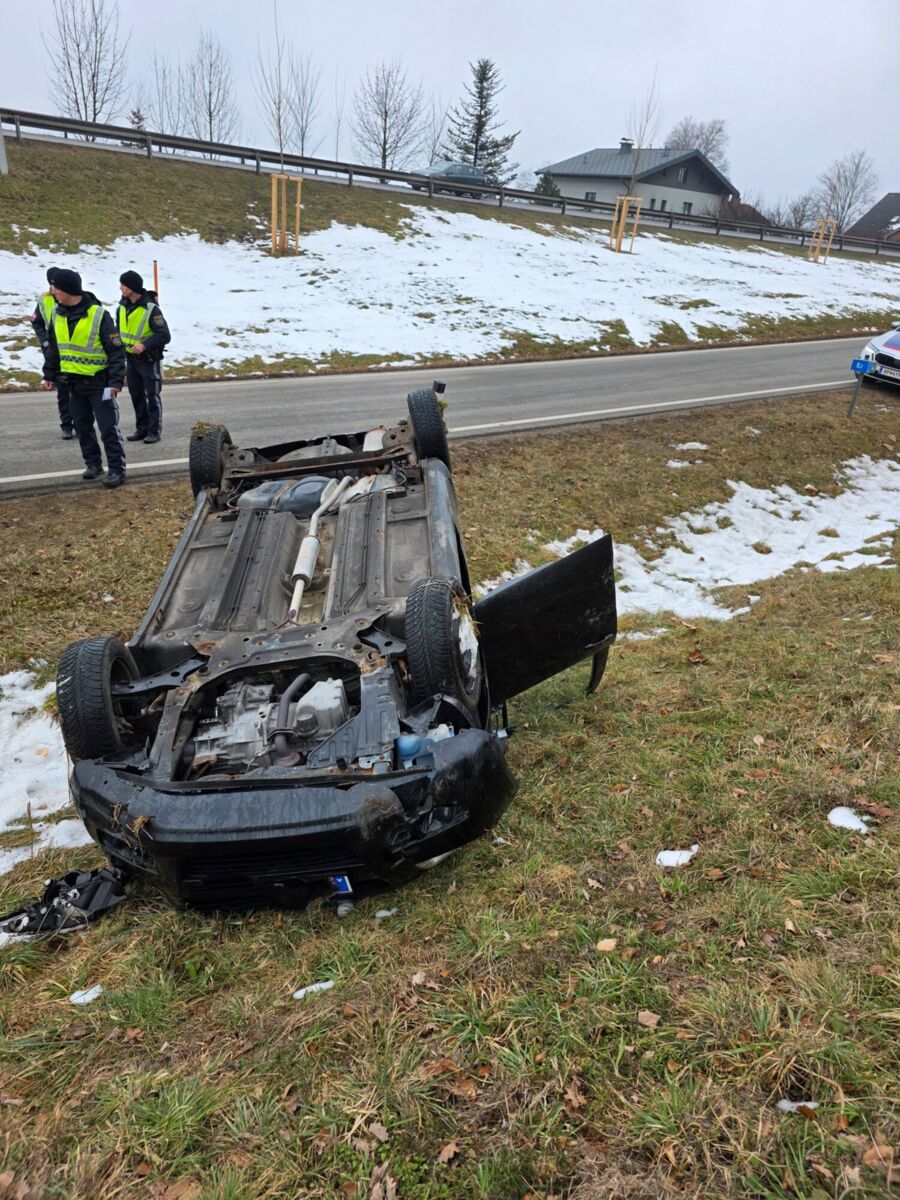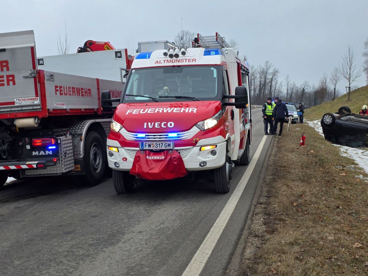 Auto blieb nach Überschlag in Altmünster am Dach liegen