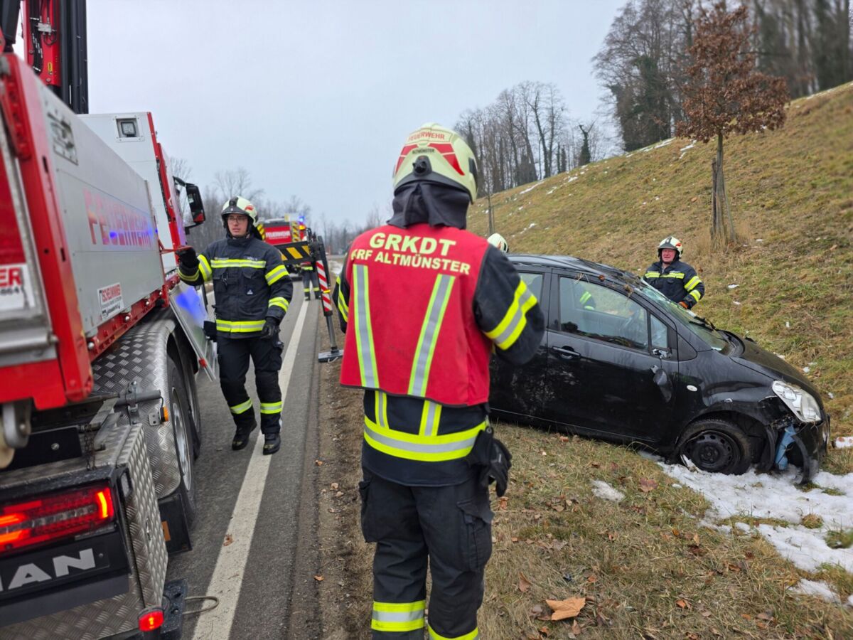 Die Feuerwehr Altmünster wurde mit dem Einsatzstichwort „Verkehrsunfall Aufräumarbeiten“ alarmiert. Beim Eintreffen der Einsatzkräfte war der Lenker bereits durch das Rote Kreuz medizinisch versorgt worden, zur weiteren Abklärung wurde er ins Salzkammergut-Klinikum gebracht.