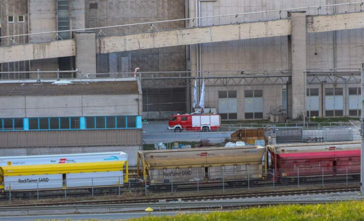 Drei Feuerwehren im Firmengelände eines Zementwerks in Pinsdorf im Einsatz