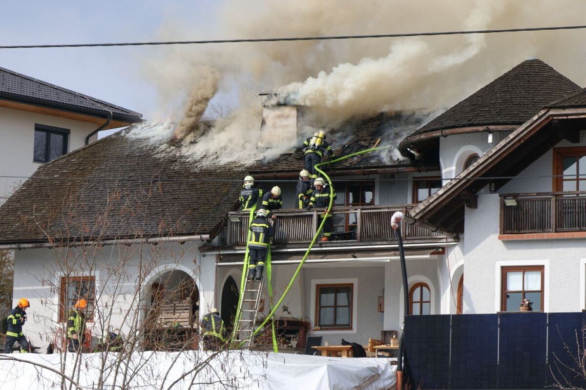 Neun Feuerwehren bekämpfen Dachstuhlbrand bei Wohnhaus in Laakirchen