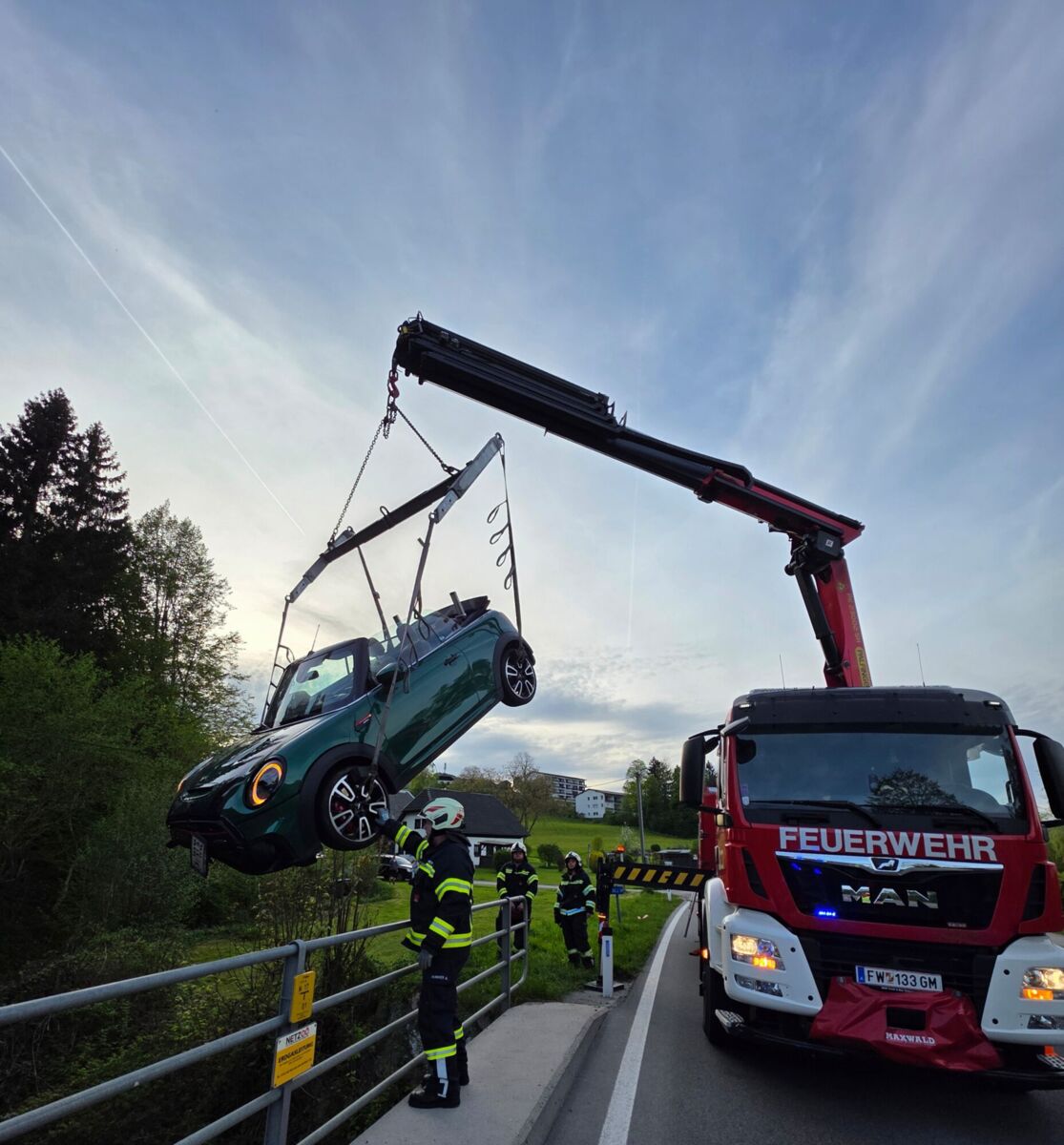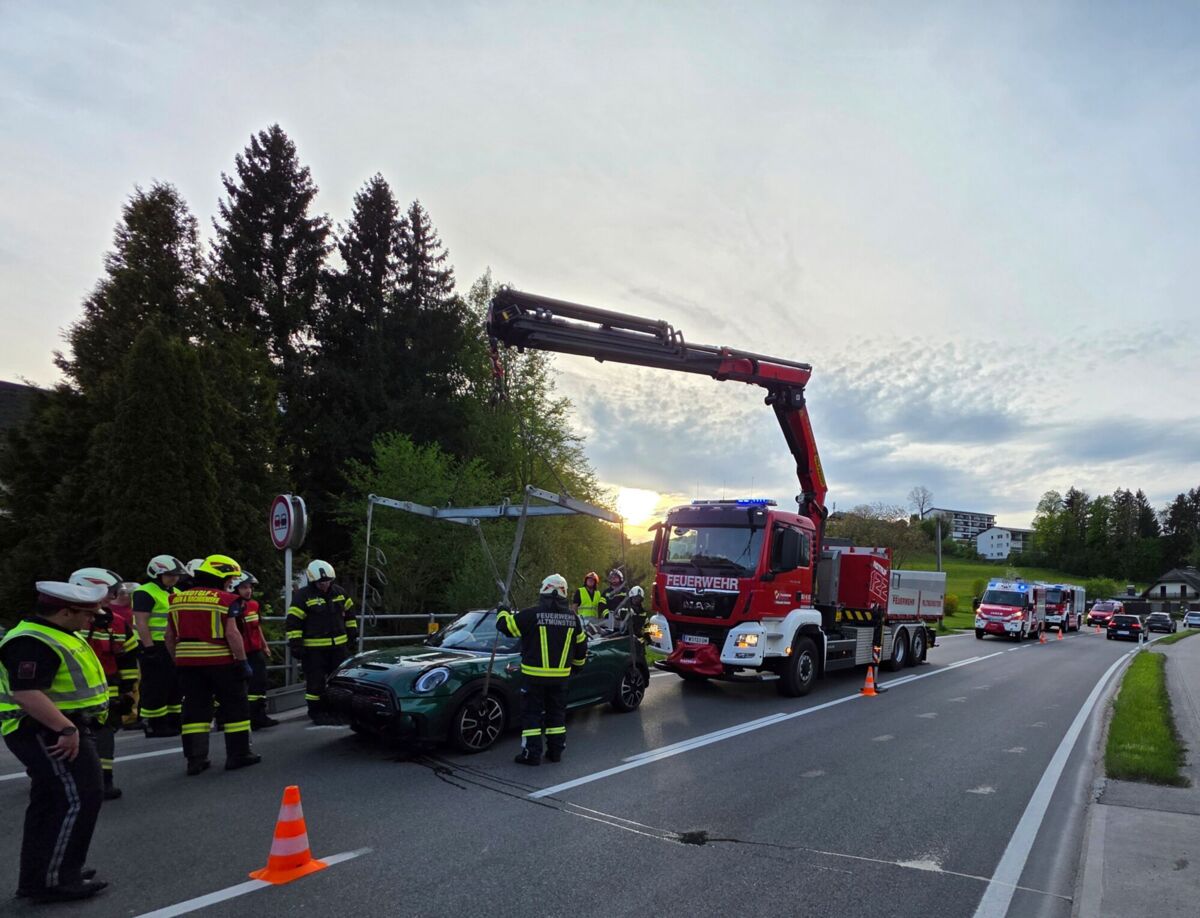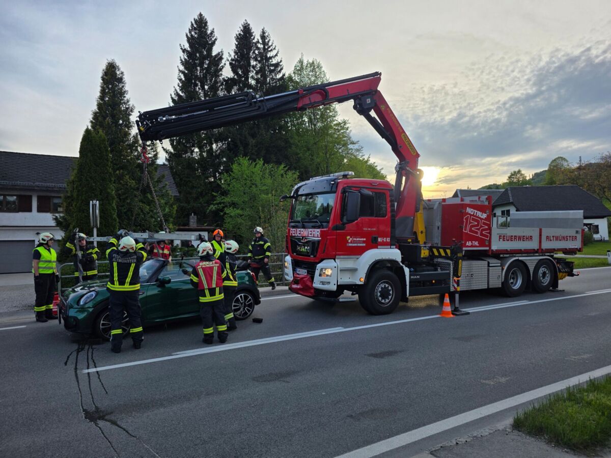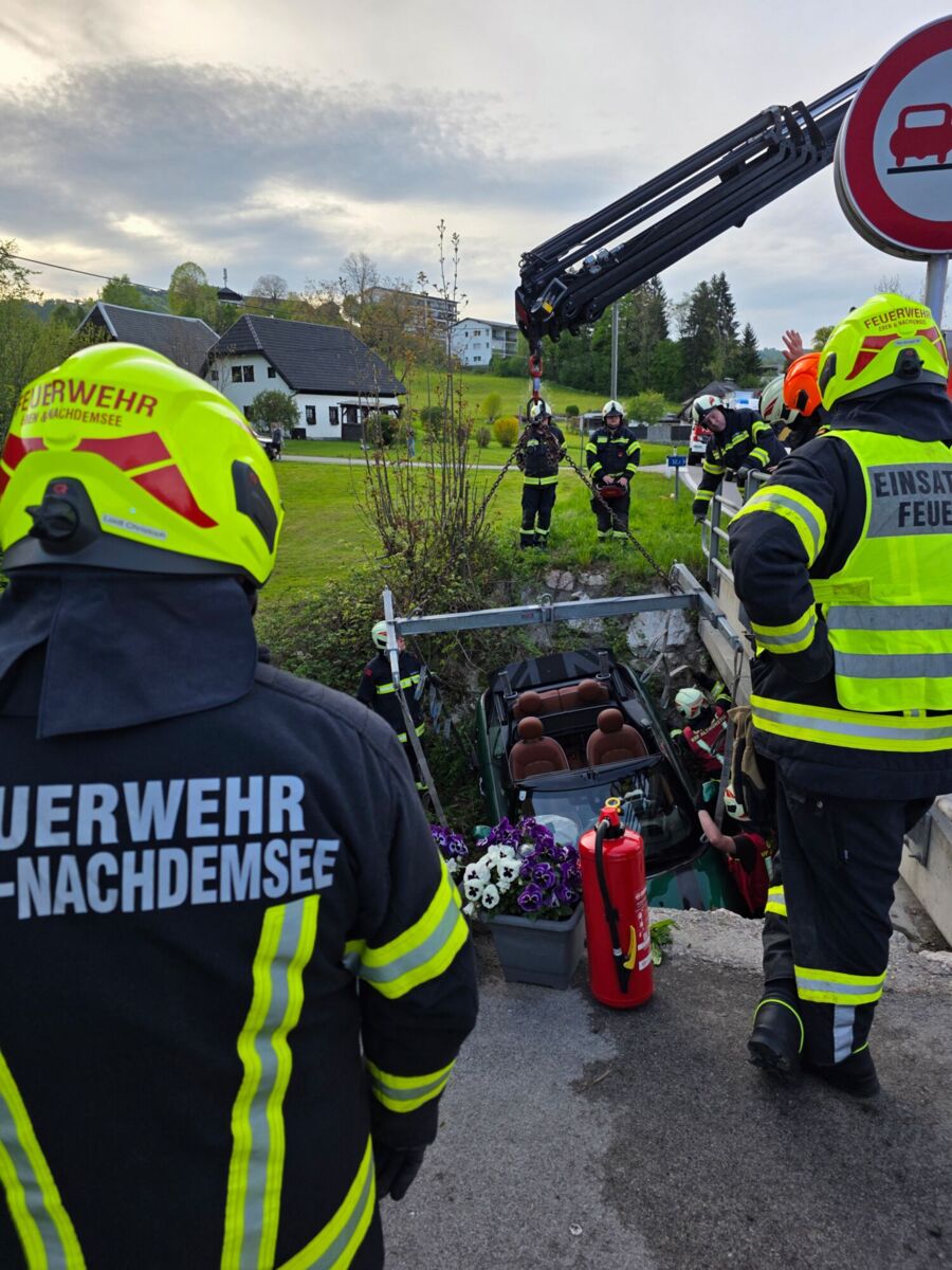 „Die Lenkerin konnte sich eigenständig aus dem Unfallfahrzeug befreien. Sie wurde zur Sicherheit und für weitere Untersuchungen vom Rettungsdienst ins Salzkammergut Klinikum gebracht“, berichtet die Feuerwehr Altmünster, die das Fahrzeug per Kran barg und gemeinsam mit der Feuerwehr Eben/Nachdemsee die Unfallstelle röumte.