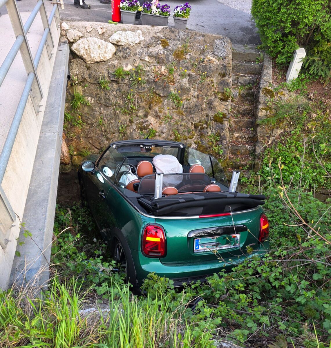 ALTMÜNSTER. Montagabend kam ein Cabrio auf der B145 in Fahrtrichtung Traunkirchen auf Höhe der sogenannten „Zigeunerfeicht'n“ aus ungeklärter Ursache von der Fahrbahn ab und landete im angrenzenden Bachbett.