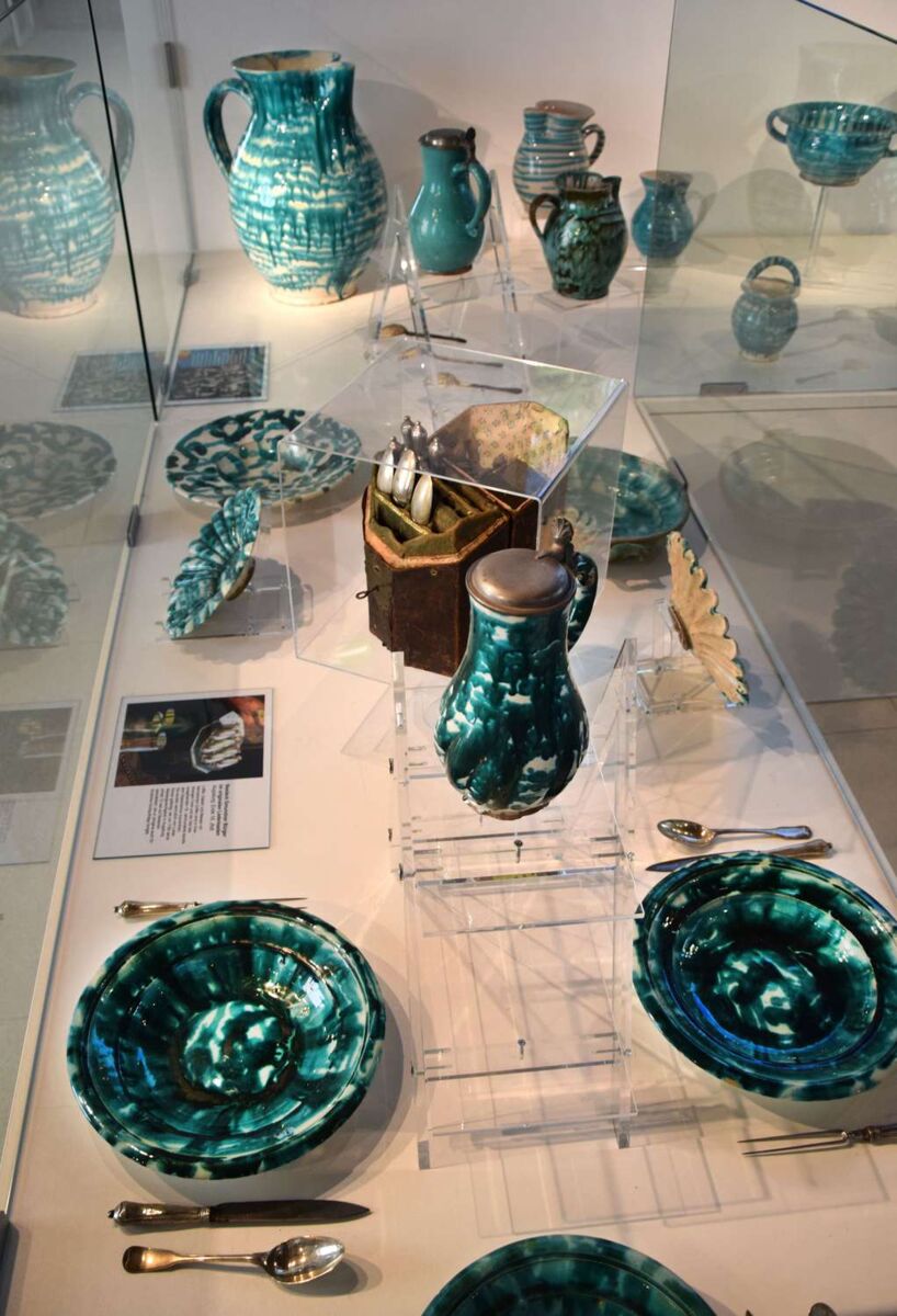 Die Aussllung „Zeitlos Grüngeflammtes“ umfasst 55 besonders schöne und besonders alte Stücke aus vier Jahrhunderten, sowohl Ziergefäße als auch Gebrauchsgegenstände sind dabei. Die alten Formen und Farbnuancen der Gefäße bezaubern und die ältesten Exponate verblüffen durch ihr geradezu modernes, wildes Dekor. Das Design und die Flamm-Technik, das Aufbringen der Glasur mit dem sogenannten Flamm-Horn, nahm die UNESCO im Frühling dieses Jahres in die Liste der immateriellen Kulturgüter auf. Auch der Nebenraum des K-Hof Kammerhof Museums ist einen Besuch wert. Dort werden rund 80 kunstvoll bemalte Gefäße ausgestellt, in der Mehrzahl handelt es sich um Krüge.