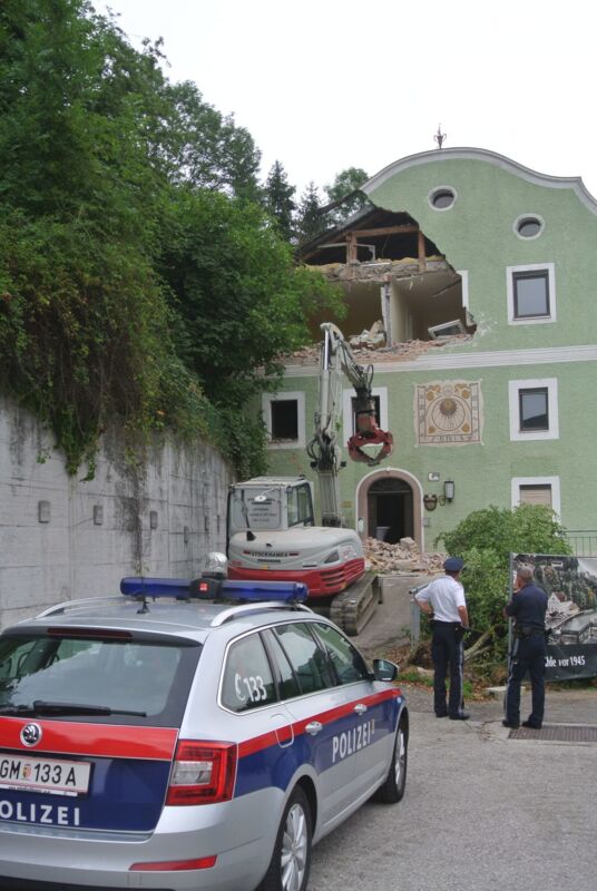 Anrainer Norbert Bors befürchtete einen nicht genehmigten Abriss des Gebäudes und informierte die Stadtgemeinde. Bürgermeister Stefan Krapf verfügte einen sofortigen Baustopp: Es liege keine Abbruchgenehmigung vor, es sei nicht einmal ein entsprechendes Ansuchen gestellt worden, so der Bürgermeister. Er übermittelte eine Sachverhaltsdarstellung an die Bezirkshauptmannschaft, die nun untersucht, ob ein verwaltungsstrafrechtliches Verhalten vorliegt, wie Bezirkshauptmann Lanz erklärt.