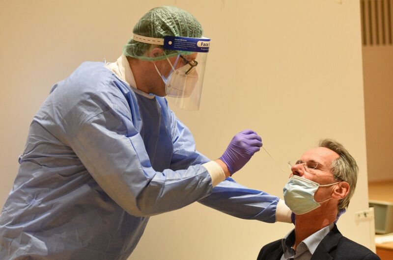 Bezirkshauptmann Alois Lanz war als Leiter der regionalen Gesundheitsbehörde bei einem Besuch sehr zufrieden mit der Organisation und der Ablaufplanung durch die beteiligten Organisationen - und ließ sich selbst auch gleich testen.