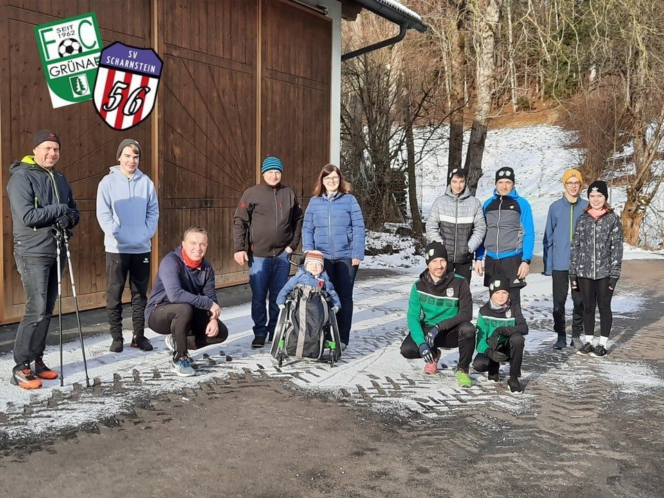 SCHARNSTEIN/GRÜNAU. Die U13- & U14-Mannschaft der im Nachwuchsbereich gebildeten Spielgemeinschaft des SV Wolf System Scharnstein und dem UFC Grünau samt ihren Trainern starteten zu Beginn des Jahres eine „Lauf-Challenge“ für Patrick Hauer.
