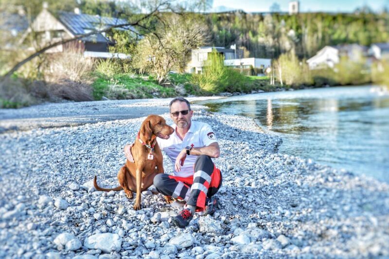 Das Mantrailing dient der gemeinsamen Beschäftigung und schweißt Mensch und Hund als Team zusammen. Wenn es intensiv geübt wird, kann es aber auch Leben retten: Horst Konrad und sein Hund Sam sind auch bei der Rettung aktiv und unterstützen die Einsatzkräfte bei Suchaktionen, etwa in Altenheimen. „Während die Flächenhunde bestimmte Sektoren untersuchen, schauen wir, in welche Richtung es gehen soll“, so Konrad. Manchmal kann es aber auch schnell gehen: „Bei unserem ersten Einsatz wurde eine Frau gesucht. Wir sind um das gesamte Gebäude und haben keine Spur gefunden. Ich habe gesagt: Sie muss noch im Haus sein – und als man noch einmal genau geschaut hat, war sie wirklich in einem verschlossenen Zimmer.“