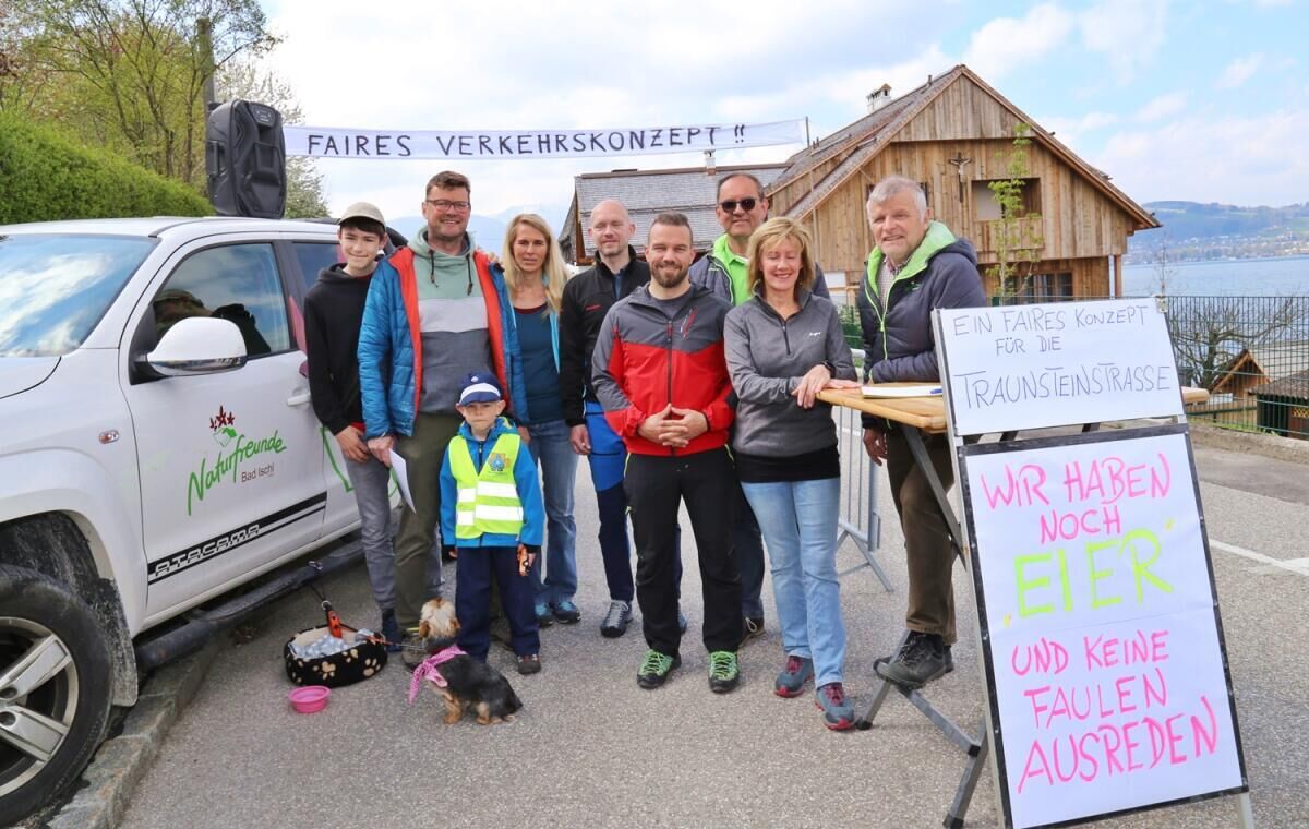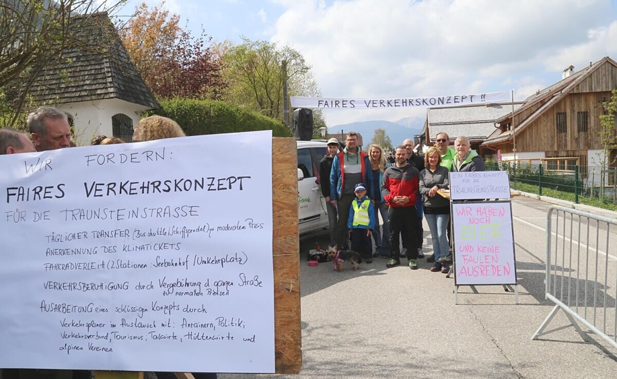 Der Alpenverein Gmunden, Obmann Andi Hengstberger, mit 2000 Mitgliedern, die Naturfreunde Gmunden, Obmann Kurt Kramesberger, die Naturfreunde Salzkammergut, Vorsitzender Manfred Spitzbart mit 5.200 Mitgliedern, Mary Purer, Wirtin Moaralm, Gerald Auinger, Wirt Gmundnerhütte und Roman Leithner, Wirt Traunsteinhaus, fordern mit dieser Protestaktion einhellig und nachdrücklich ein „faires Verkehrskonzept“.