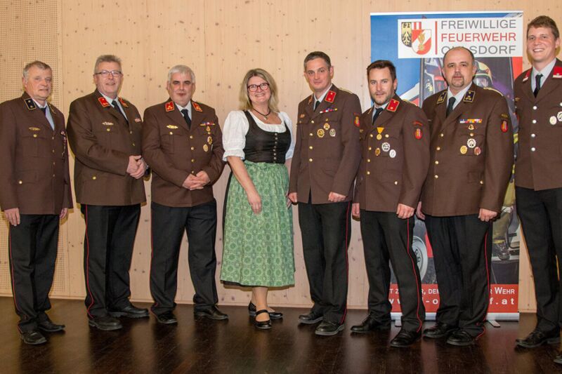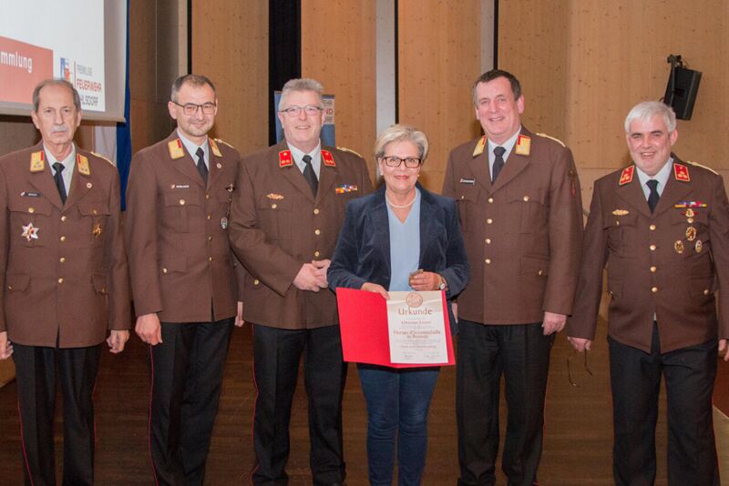 Die frühere Bürgermeisterin Christine Eisner erhielt aus den Händen von Kommandant Pesendorfer die Florian Ehrenmedaille in Bronze des Oö. Landesfeuerwehrverbandes. Michael Hamedinger und Gerald Baldinger wurden mit der Dienstmedaille für ihren 25 Jahre langen Dienst ausgezeichnet, Andreas Maxwald erhielt die Ehrung für 40, Rudolf Kreuzer für 50 Dienstjahre.