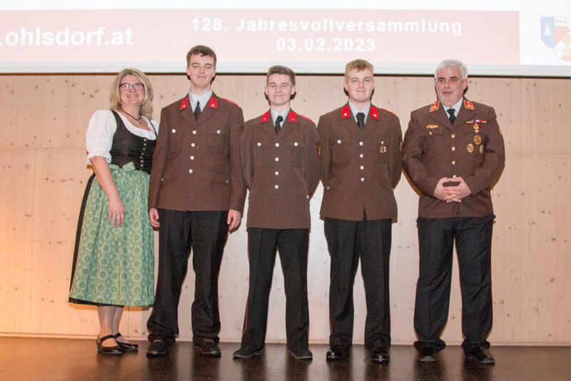 Nach den Berichten der Amtswalter und des Kommandanten wurden noch Beförderungen durchgeführt. Angelobt wurden Tobias Janny, Sebastian Kao und David Pamminger. Zum Oberfeuerwehrmann angelobt wurde Christian Pöll